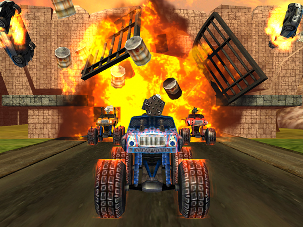 Choose your Crazy Monster Truck between Mafia, Mobster, Bandit and Robber. Fight on different stunning environments Desert, Snowy Mountains and Jungle. Enjoy the new power-ups.