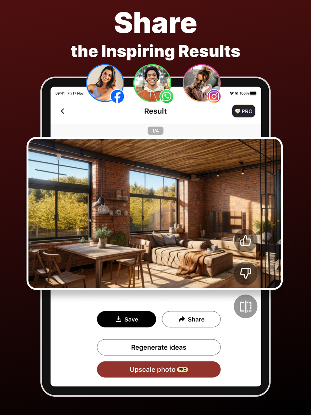 Let your rooms experiment with different designs and discover what suits them best. Whether you prefer chic or minimalist, classic or contemporary, Western or Oriental—unleash your inner designer and master various styles like a pro. Share the stunning renders created by the app, bring them to life, or save them for future reference. Need another design idea? It's just a few taps away!
