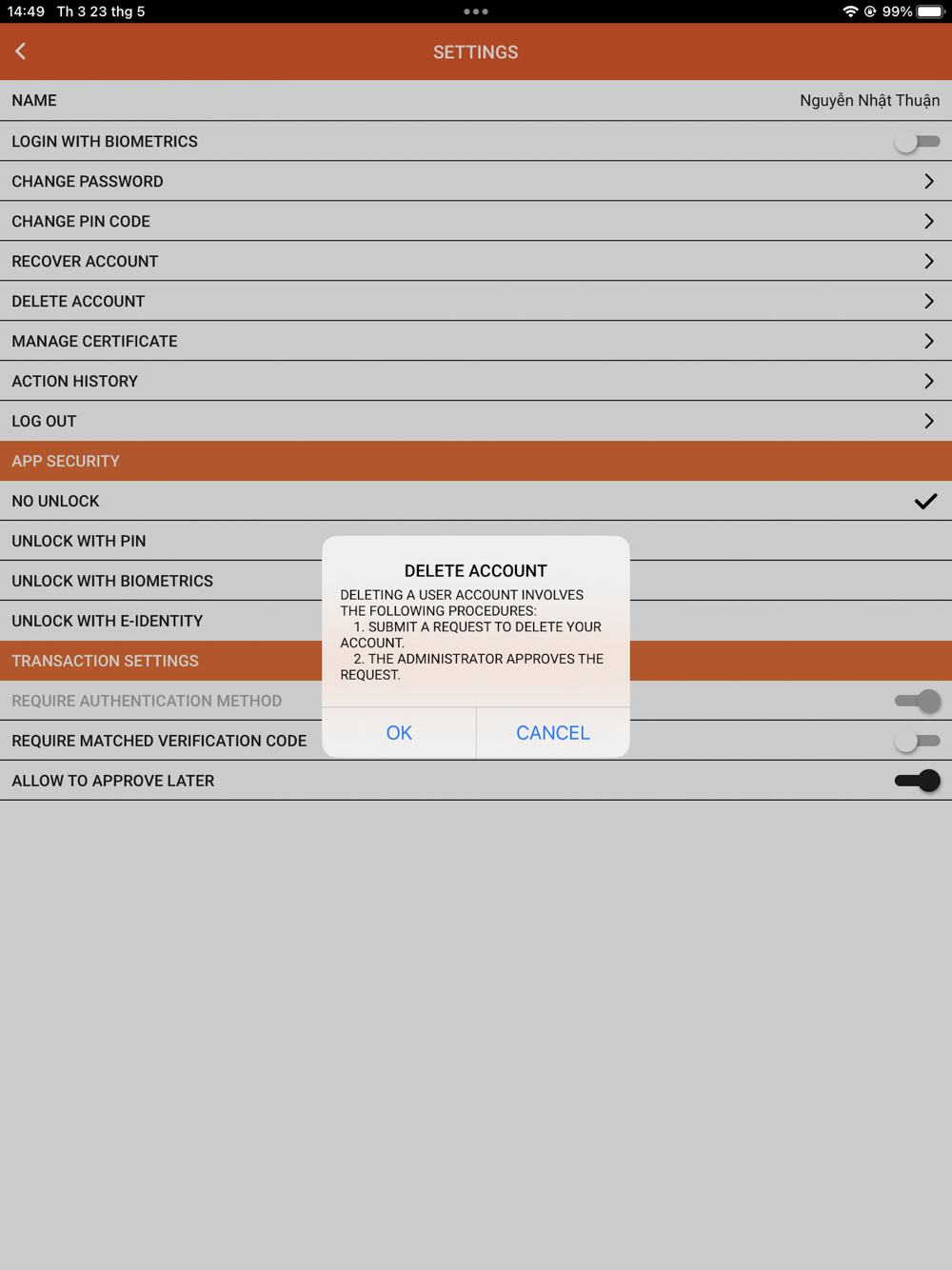- TOUCHID, FACEID OR PIN CODE FOR UNBLOCKING ACCESS TO THE SECURE