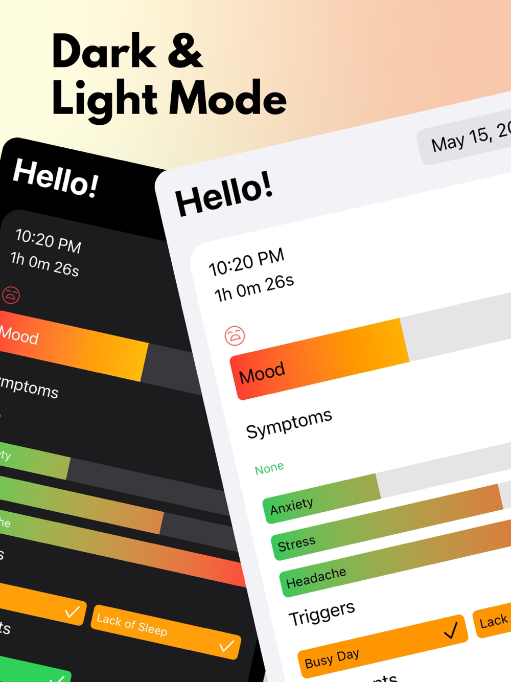 - Record your mood, symptoms, treatments, and triggers with just a few taps