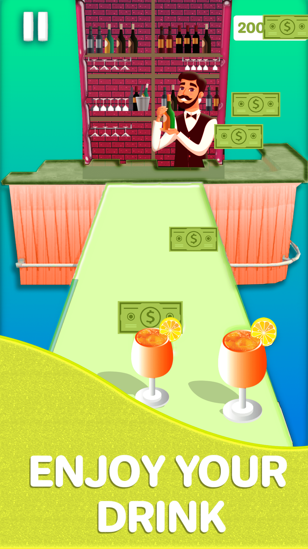 • Fun cup game where you learn to serve and make drinks.