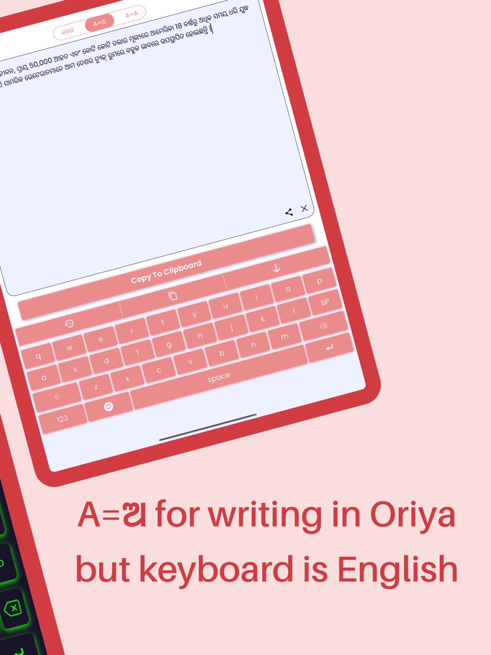 - Phonetic Mode – Type Odia using an English keyboard (A = Odia letter)