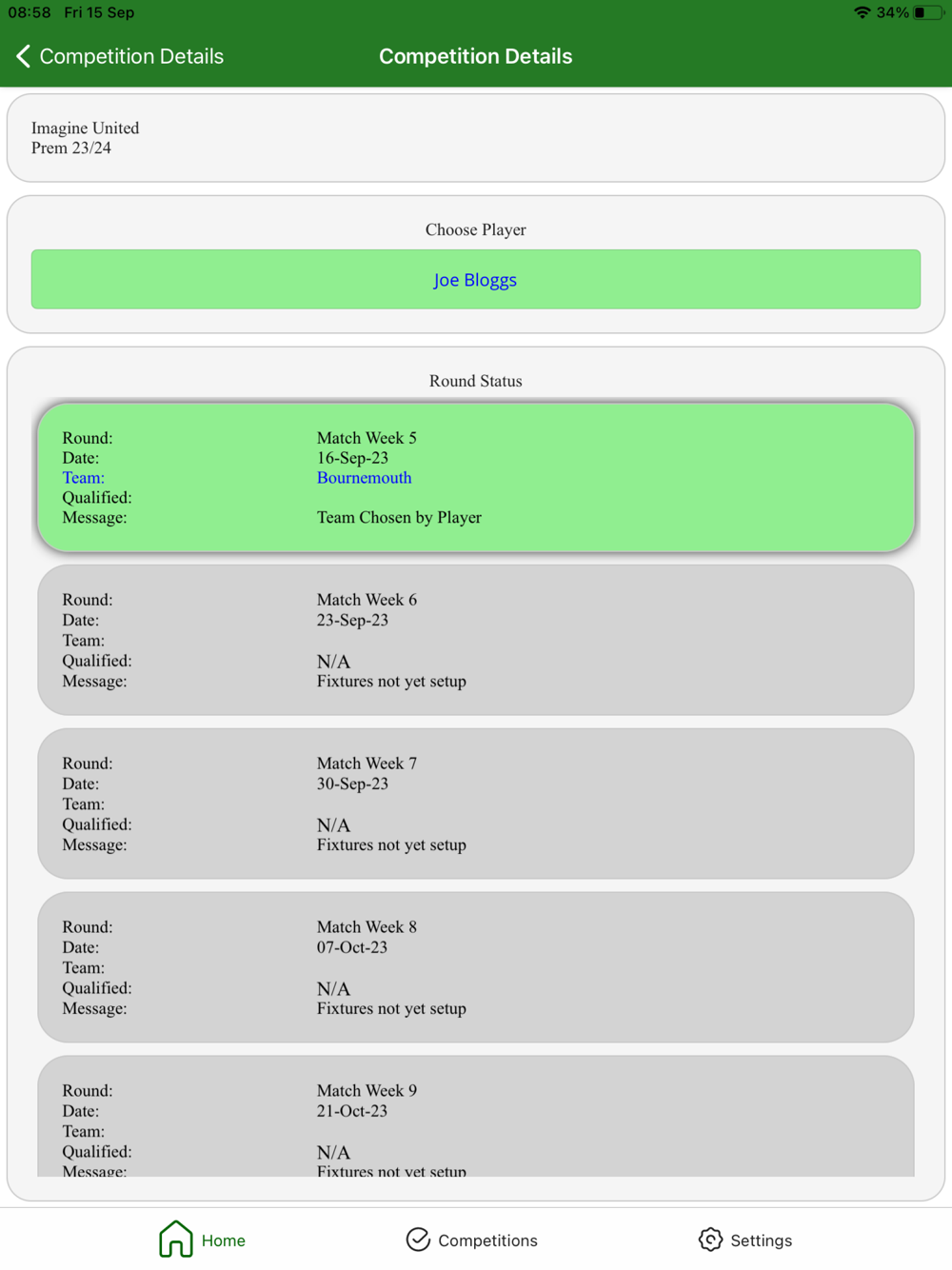 Allows sports clubs to manage the Last Man Standing competition, and players to make team choices for each round.