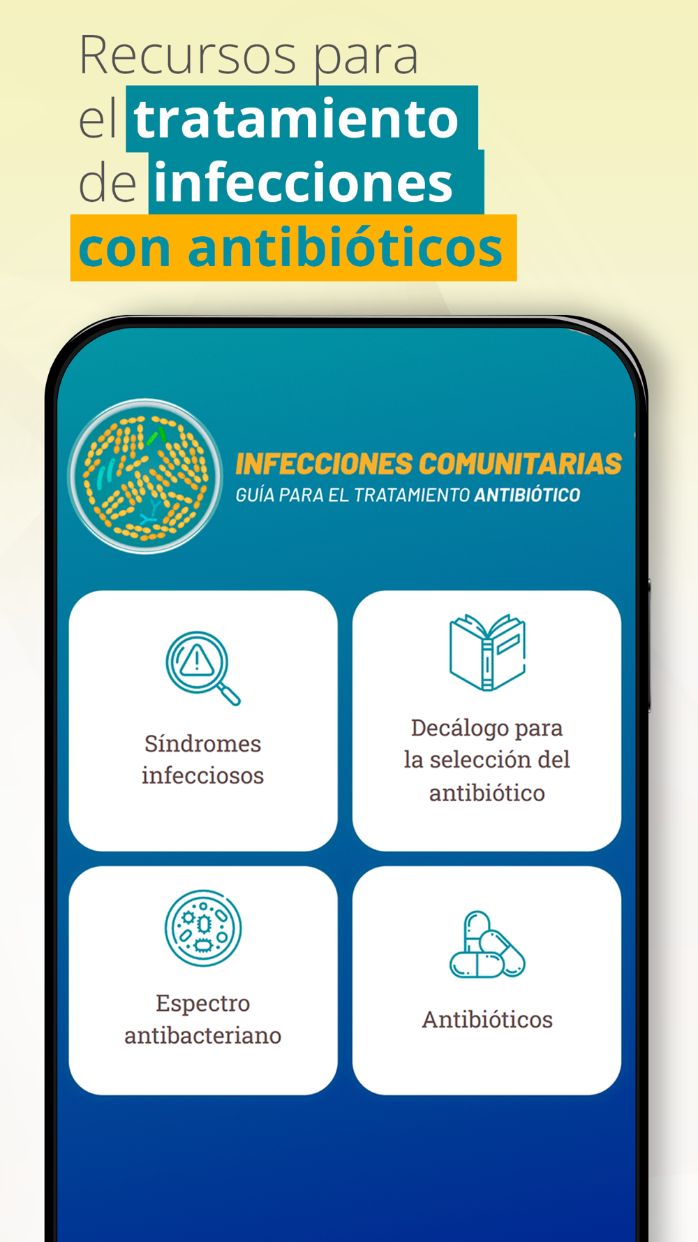 En esta aplicación se pretende ofrecer una serie de recomendaciones para el tratamiento empírico de los pacientes con infección comunitaria en base al síndrome que presenta