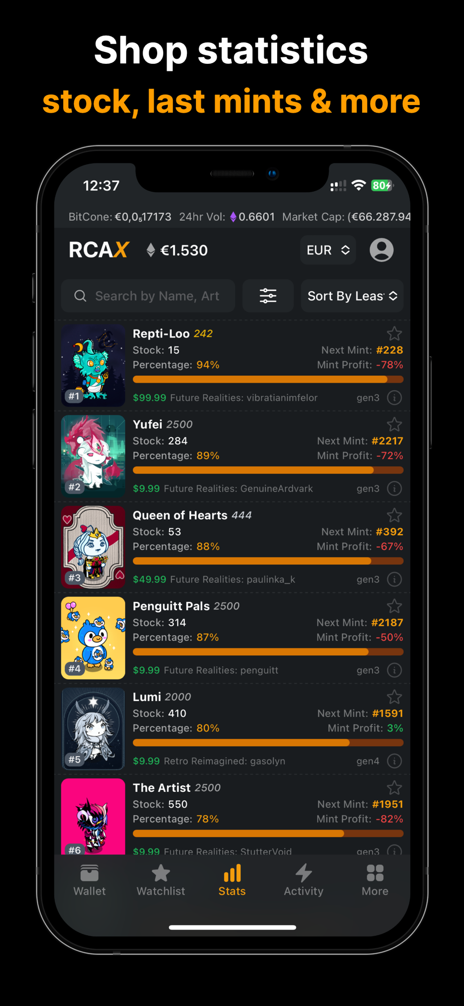 - Watch the latest data like Floor Prices and Last Sales, Mints, Listings.