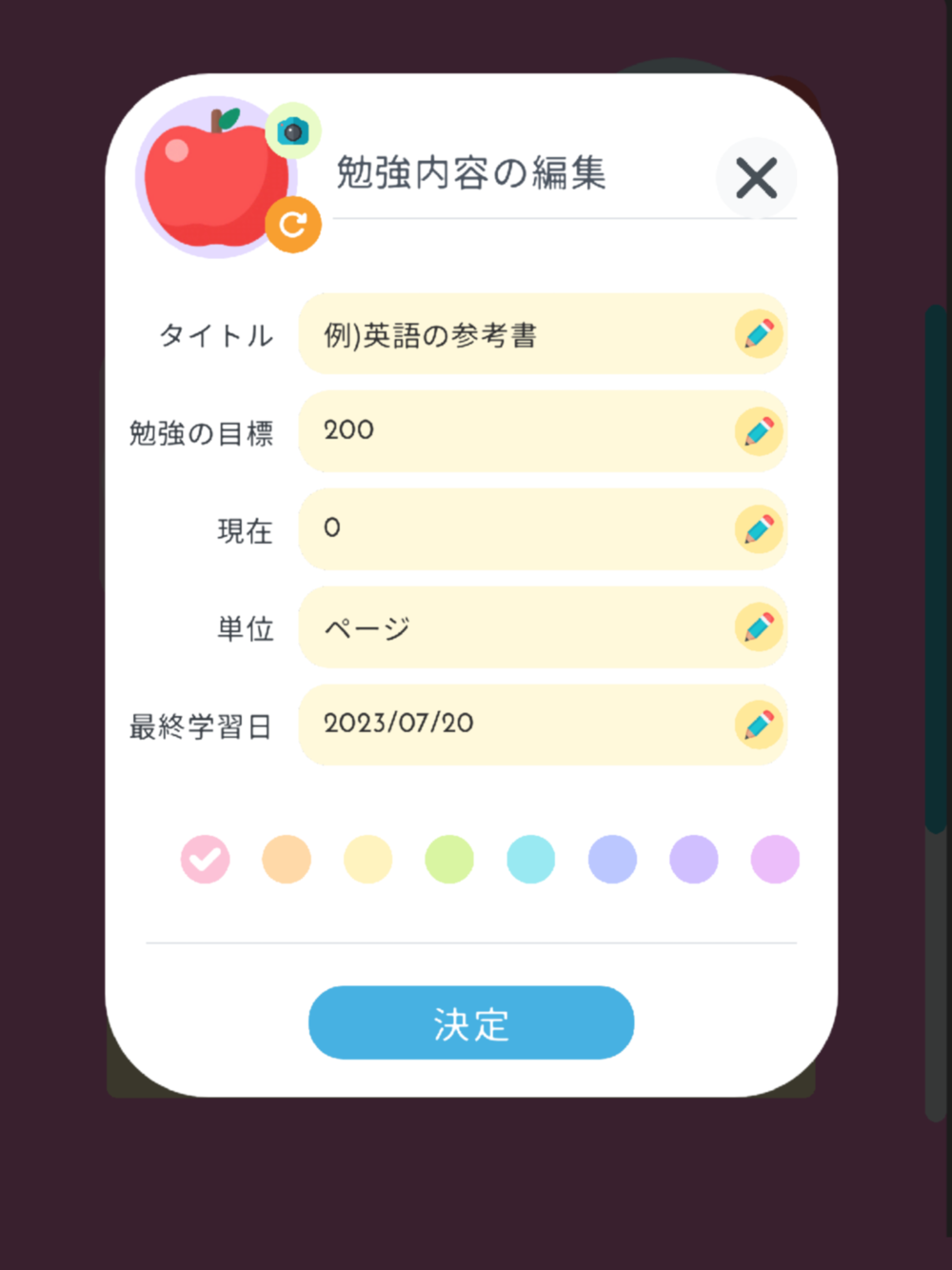 ・テキストのページ数や問題集の問題総数、単語の数など目標を入力し、