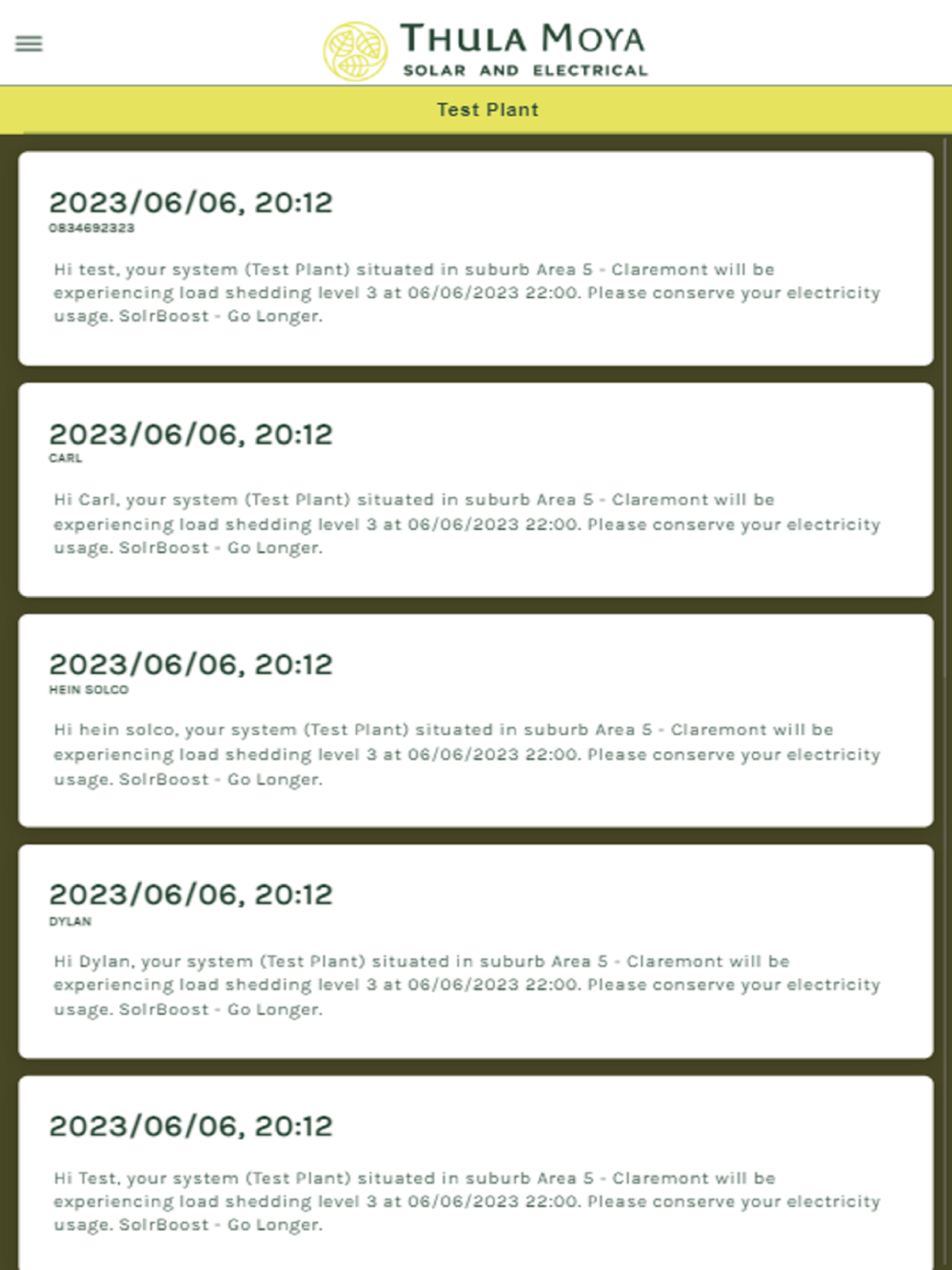 Mobile Application for Thula Moya customers. Customers can register for push notifications, see their loadshedding schedules as well as historical messages sent to them.
