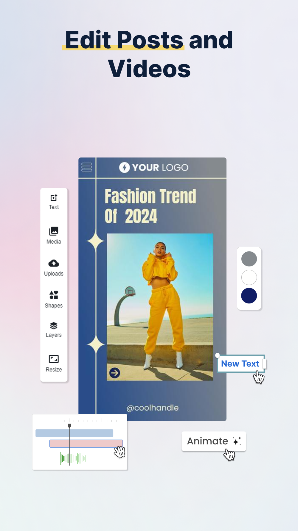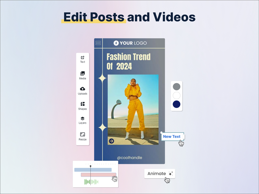Just give a simple text input to our AI and create social media reels, videos, memes, posts, captions, and hashtags. Edit with our built-in editor, plan with our social media content planner, and schedule in a click.