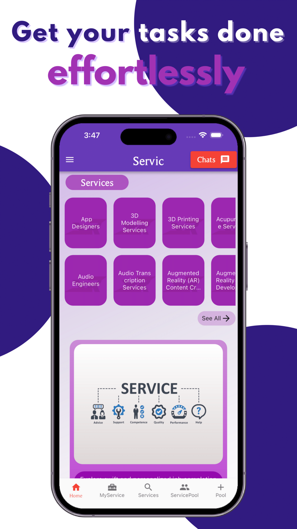Servic offers a service pool, allowing service providers to bid for work, also empowering service seekers to select the provider that best aligns with their specific needs.