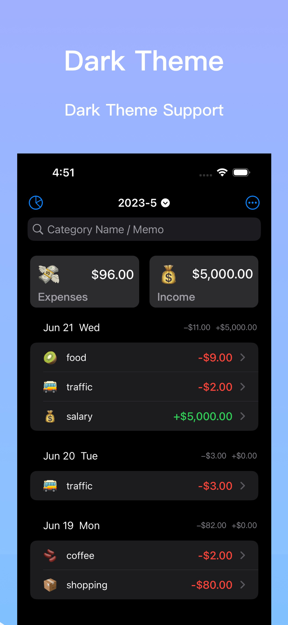 Moneys is a lightweight and minimalist financial app, also it is easy to use. Moneys focus on tracking expenses and income, and has detailed statistics, you can analysis and improve your financial situation.