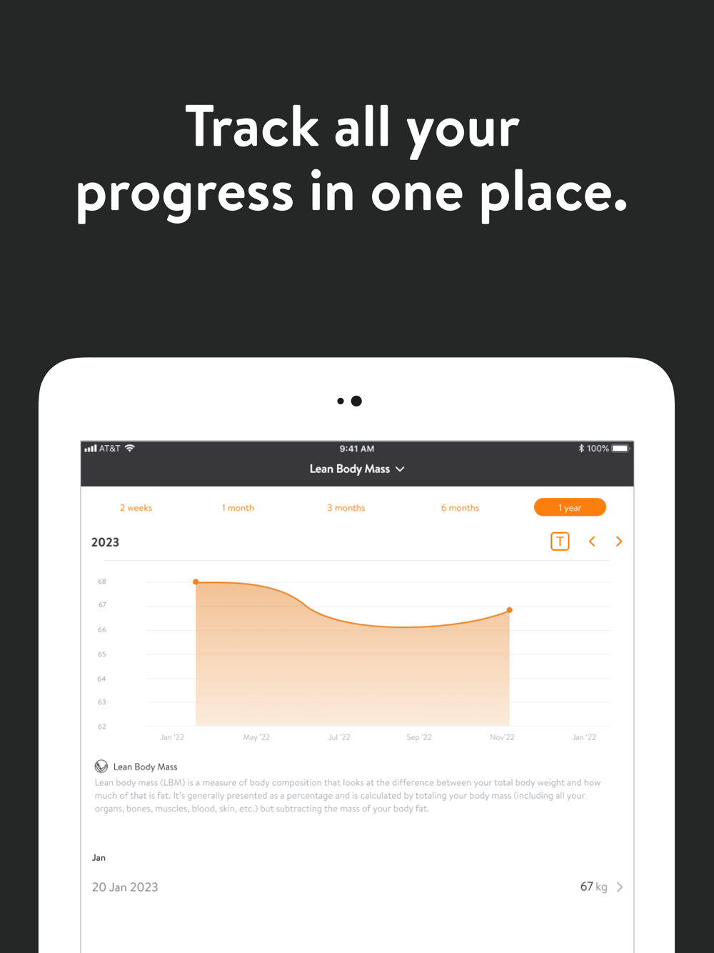 - Connect to other wearable devices and apps like the Apple Health App, Garmin, Fitbit, MyFitnessPal, and Withings devices to track workouts, sleep, nutrition, and body stats and composition