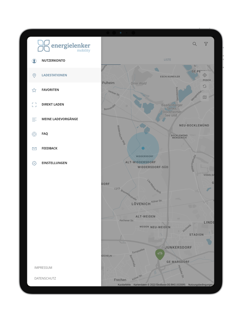 - Übersichtliche Kartendarstellung zum Auffinden von Ladepunkten