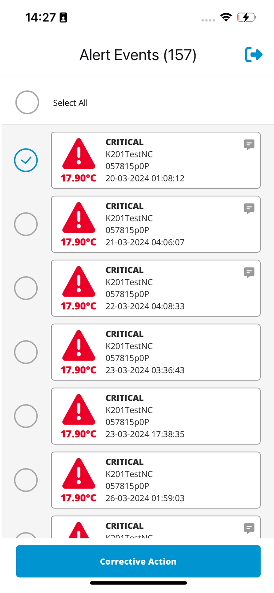 For clients who are equipped with a Kelsius wireless sensor network, this app will receive notification of any sensor measurement excursion alert (temperature, humidity, ...). In addition, you will be able to view the alert detail and enter corrective actions, for compliance.