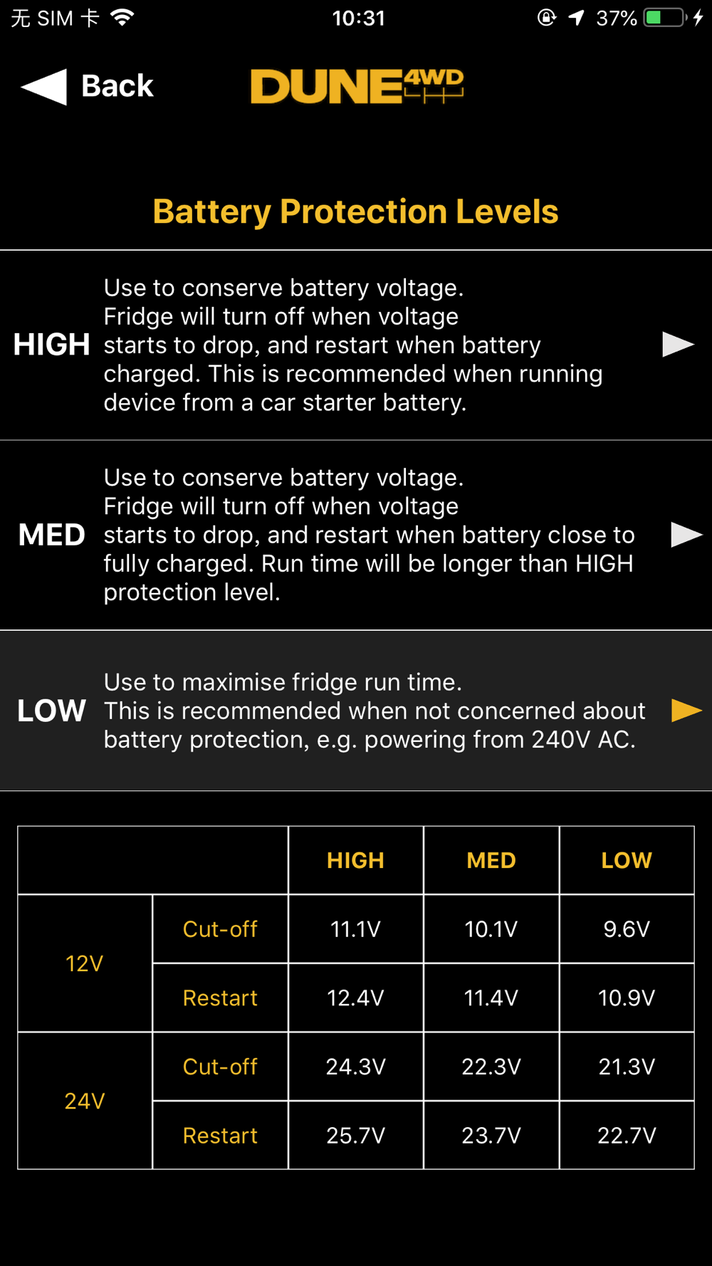 Use the Dune 4WD Fridge/Freezer app to control and monitor your Dune 4WD Fridge/Freezer.