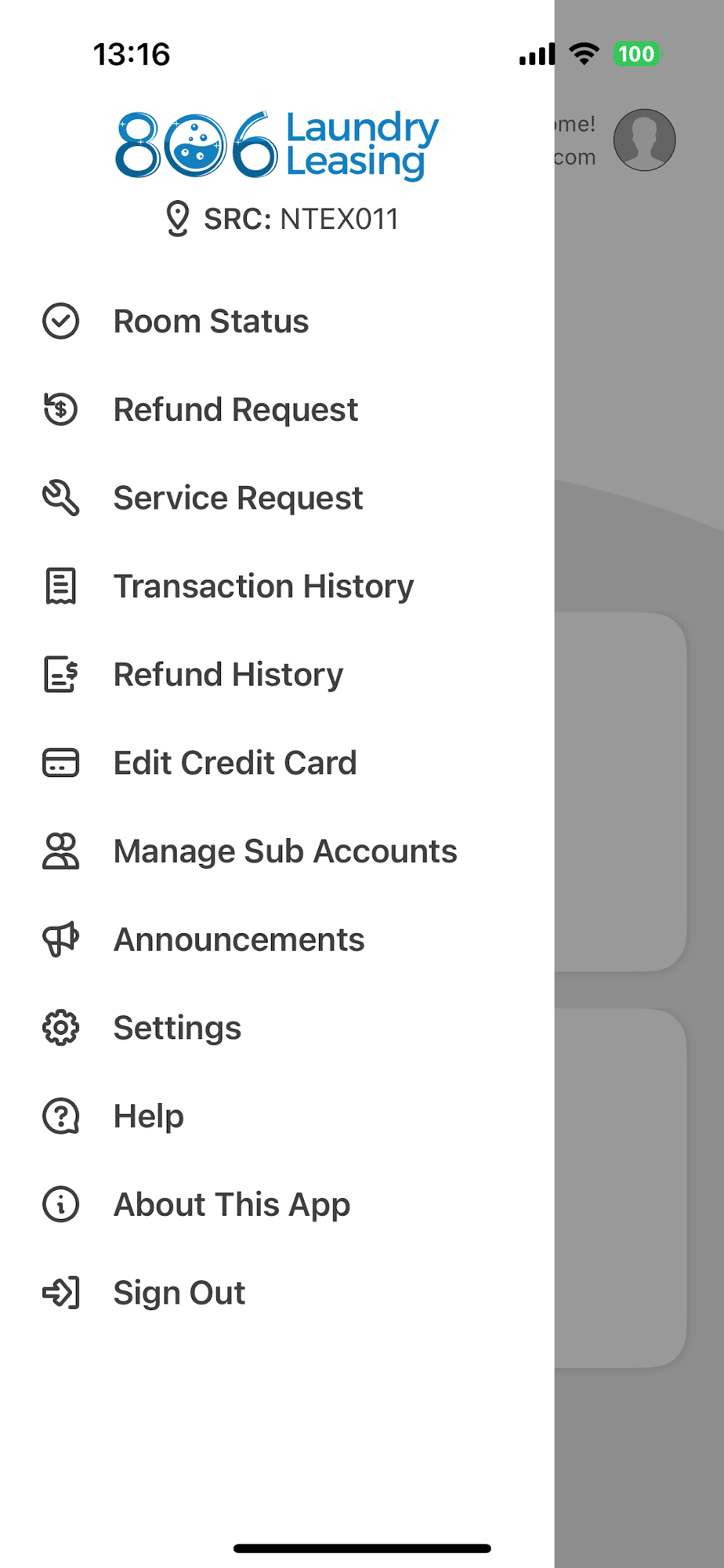 Simply use 806 Laundry Leasing to purchase credit right from the app, then use that credit for your laundry. A full accounting is available to see your transaction purchase history.