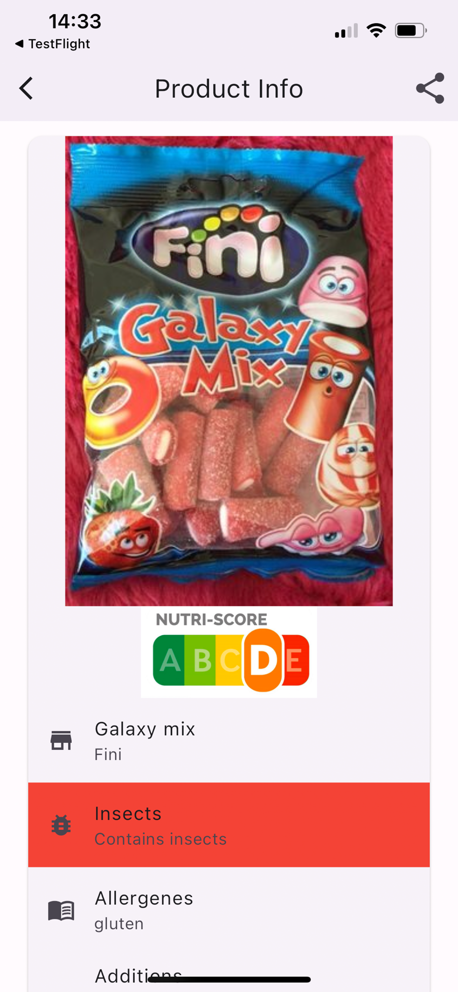 • The app will immediately show you if the product contains insects or not