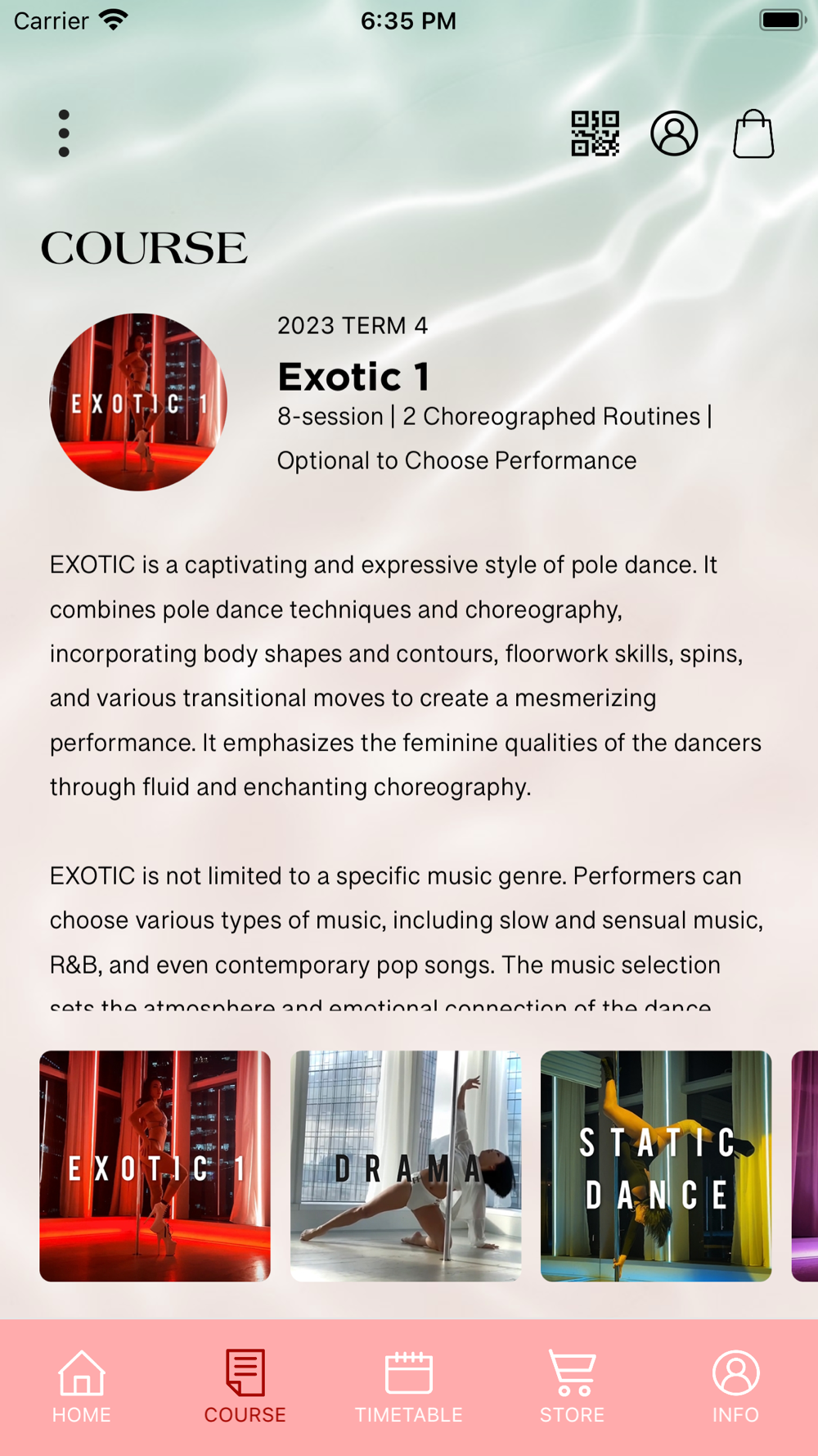 GLAM provides a membership registration system for pole dance and aerial arts courses, allowing students to sign up easily, schedule classes, and adjust makeup class arrangements. Additionally, we offer shopping services to keep you updated on the latest courses and promotions.