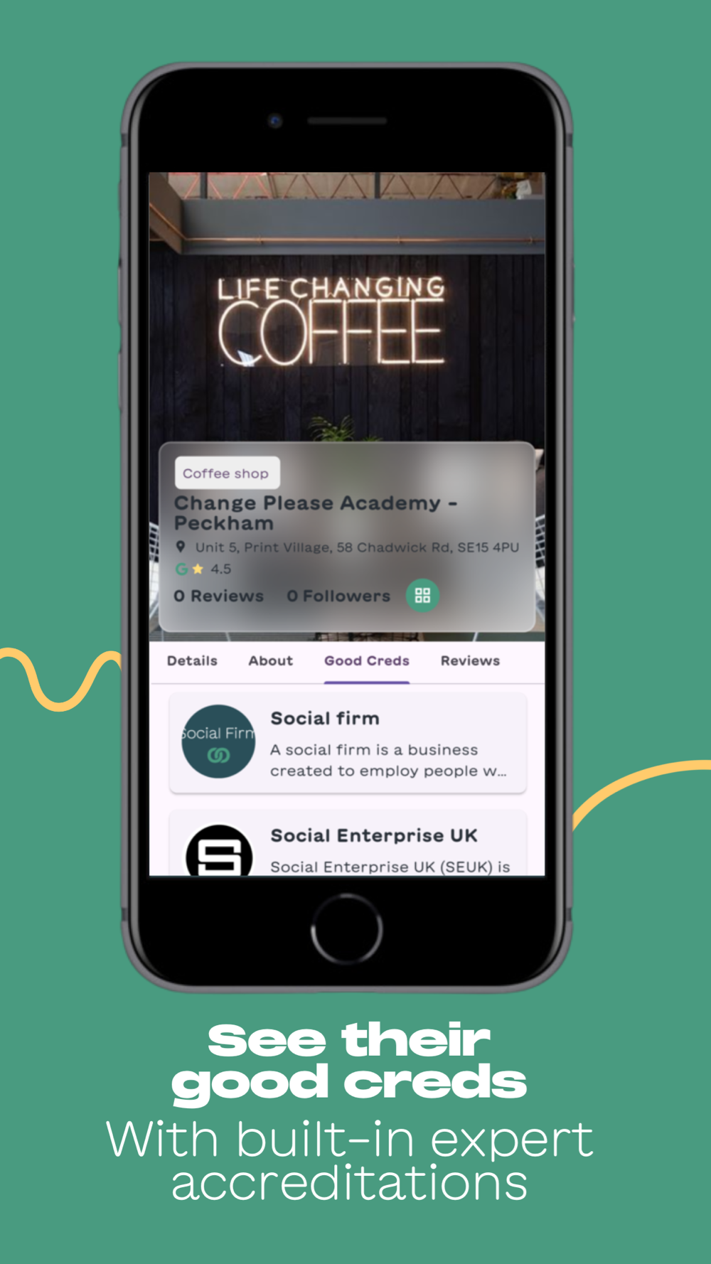 > Built-in accreditations and info on what each business is doing