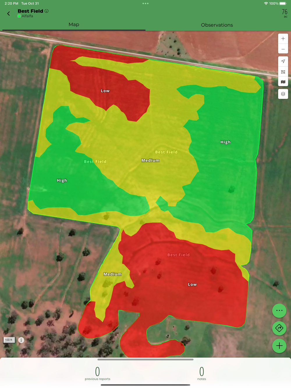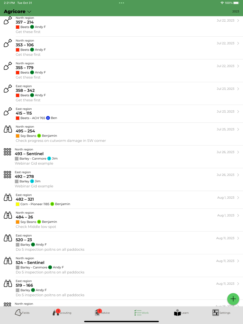 The Agricore mobile app provides easy access to up-to-date field information, map layers, fieldcore management zones and task execution. The app features customizable field scouting tools, spray application tracking, task management and more.