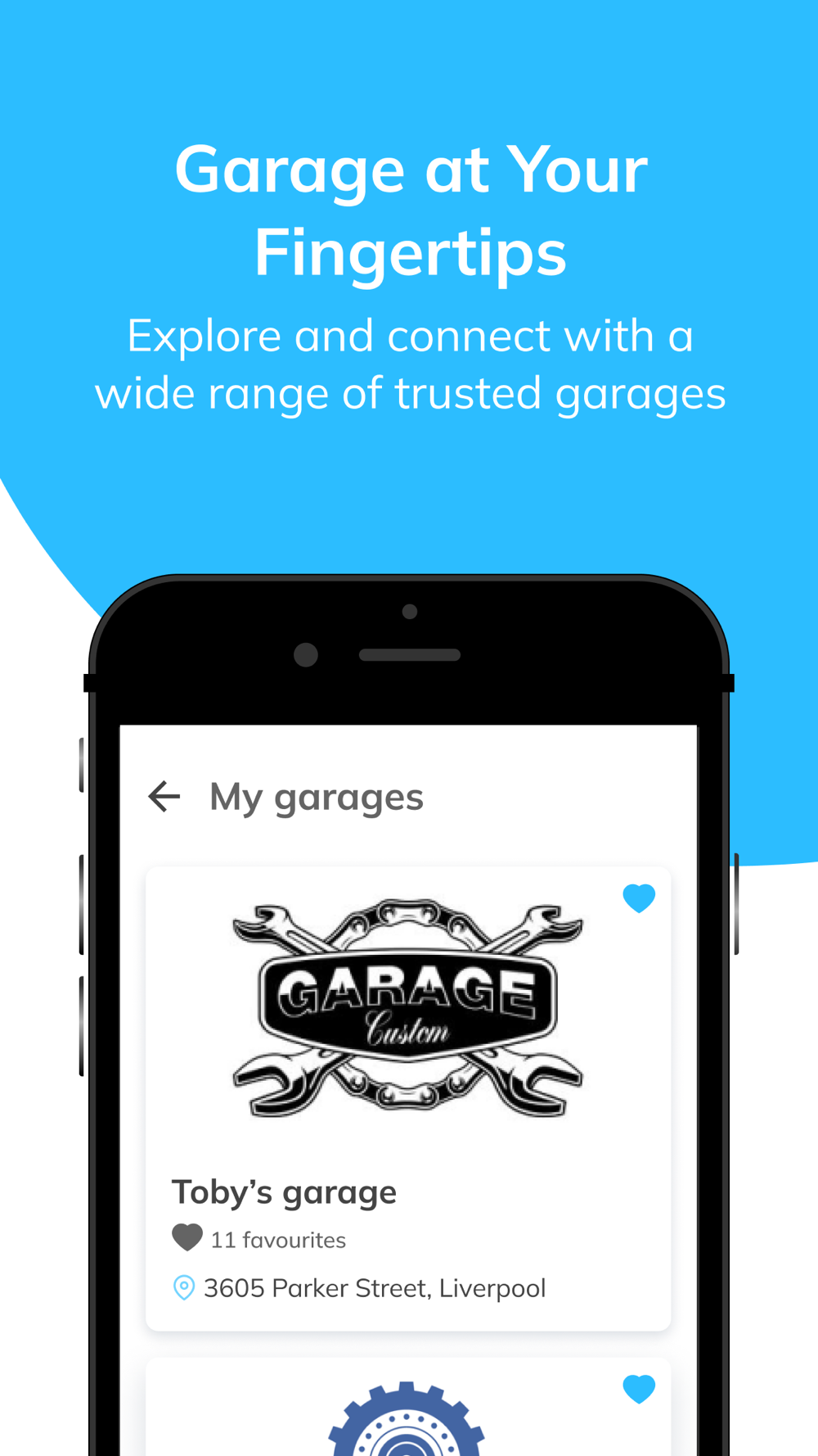 Garage Finder: Explore and connect with our trusted local garages. Book appointments and message them directly through the app.