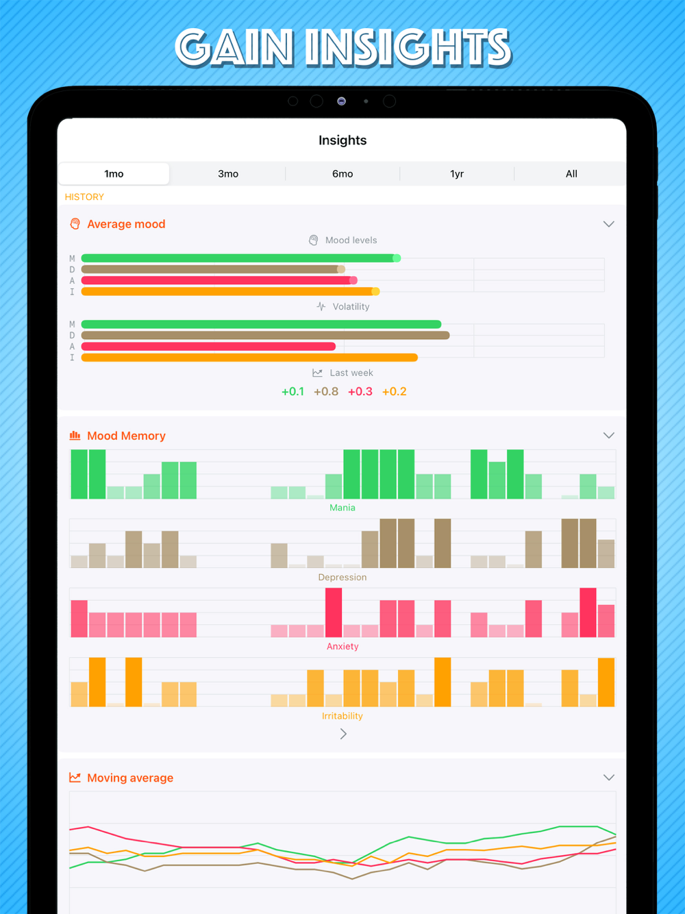 With the Bipolar Mood Tracker, gain valuable insights into your mood trends over time. Visualize your progress, recognize patterns, and discover what influences your mood shifts. This comprehensive overview can be invaluable in working towards emotional stability.