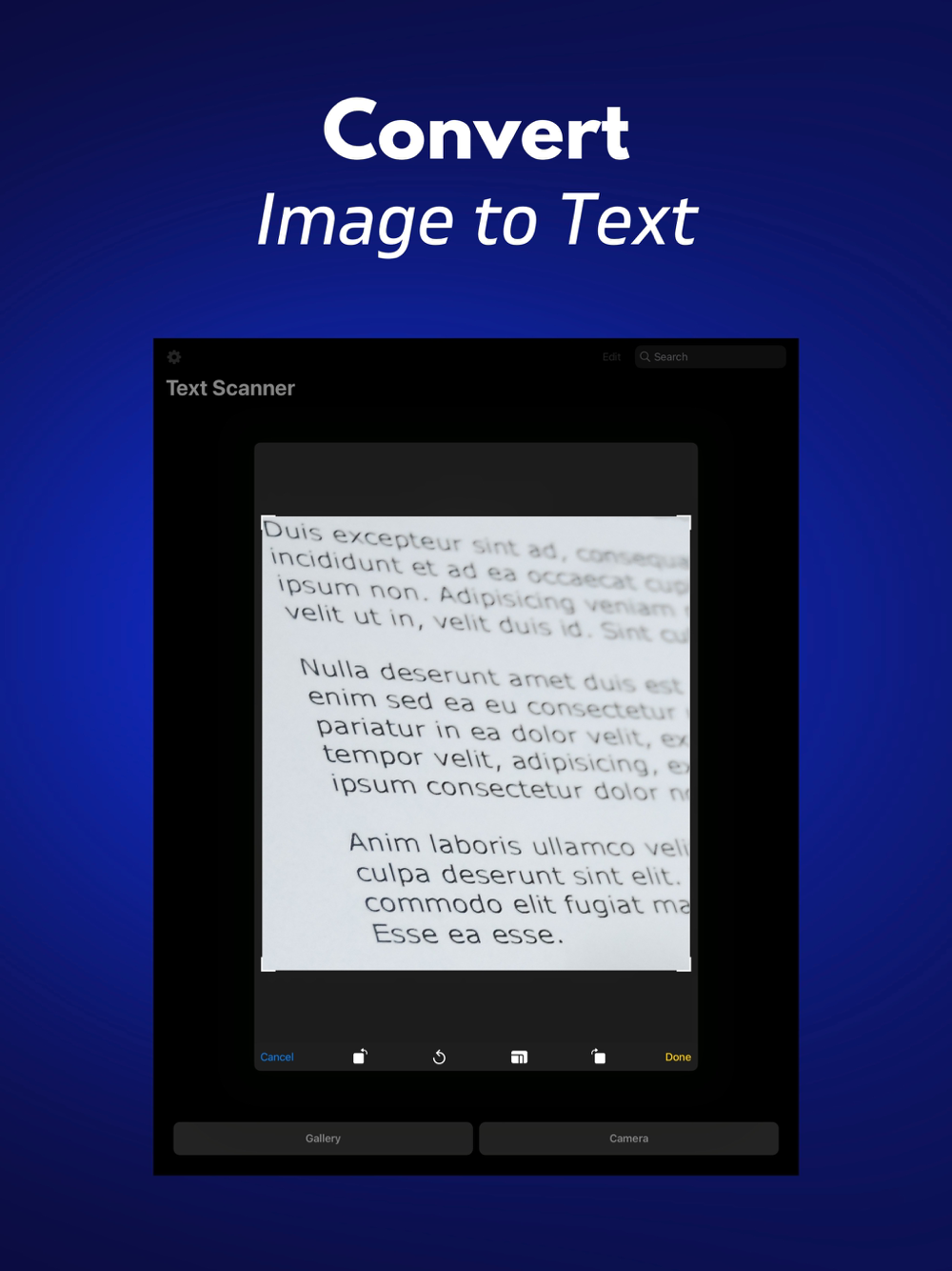 Image Import or Capture: Choose the method that suits you best. Import text-heavy images from your gallery or snap a picture on the spot with your camera.