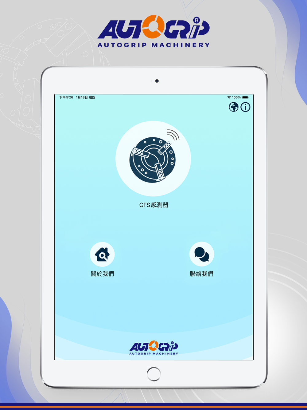 The Gripping Force Sensor (GFS-100) is produced by AUTOGRIP MACHINERY CO., LTD. This APP is working together with the GFS-100 to collect the static and dynamic gripping force data via blue tooth signal.