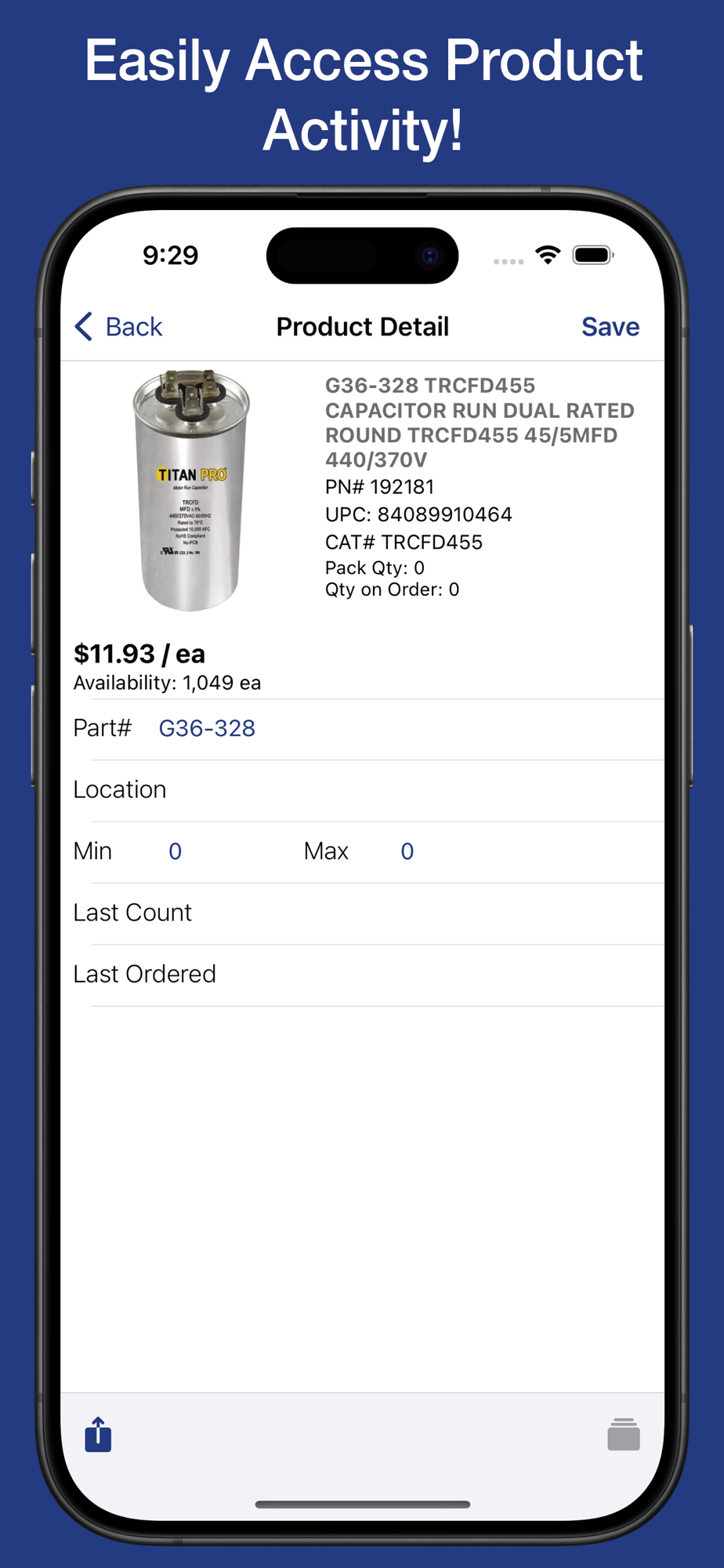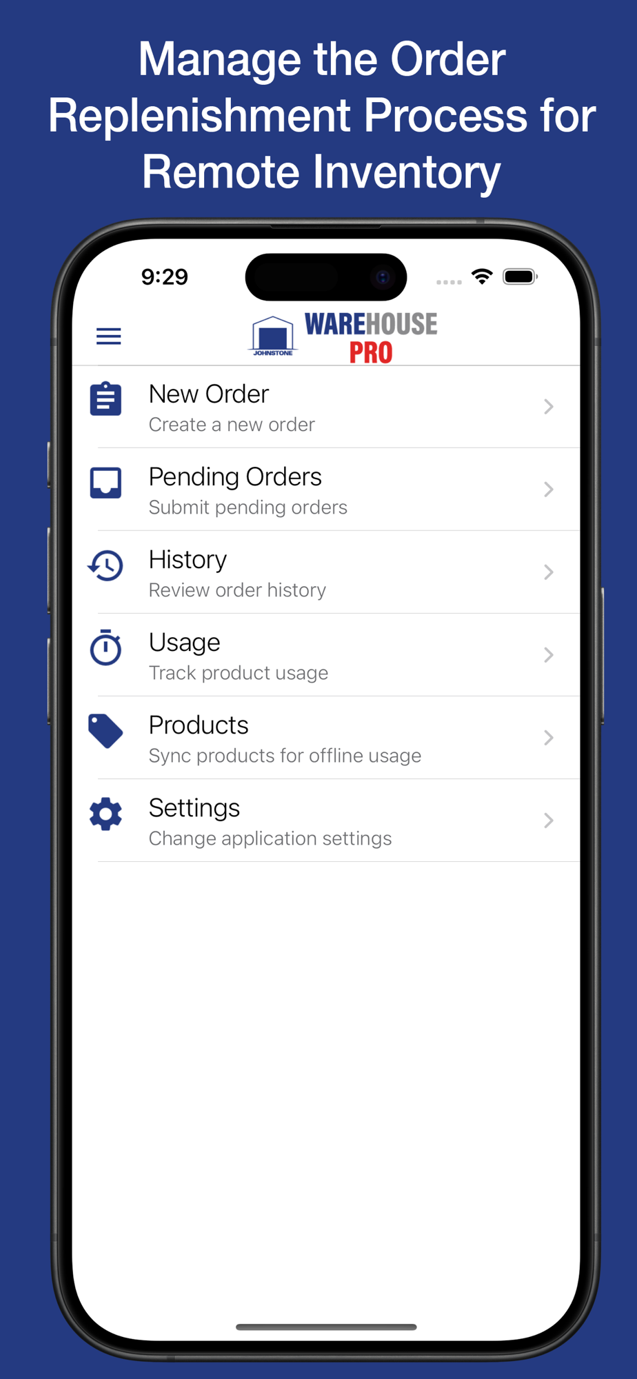 Automate your customers' inventory replenishment process with WareHouse Pro, a fast, efficient, and easy-to-use mobile app. Improve inventory accuracy with the added benefit for customers to track their on-hand inventory. Enhance your billing process by tracking product usage by job, while maintaining sufficient inventory levels to support onsite workflow.