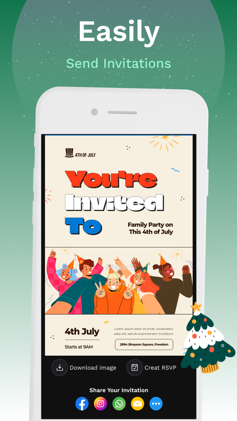 • Make an online invitation, birthday party, wedding invitation, Baby shower, Bridal shower, Christmas, Valentine's Day, thank you card, graduation party, etc.