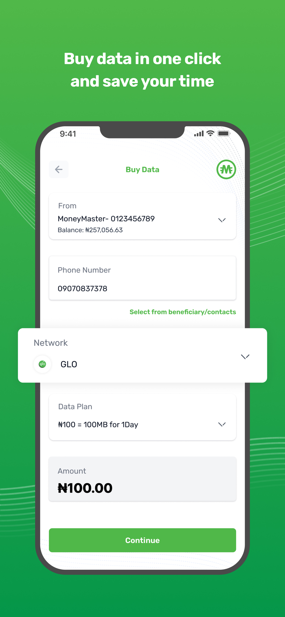 You can purchase airtime for any mobile network operator in Nigeria and buy data packs directly from the app. We provide a pop-up menu for easy selection of data bundles for each operator.