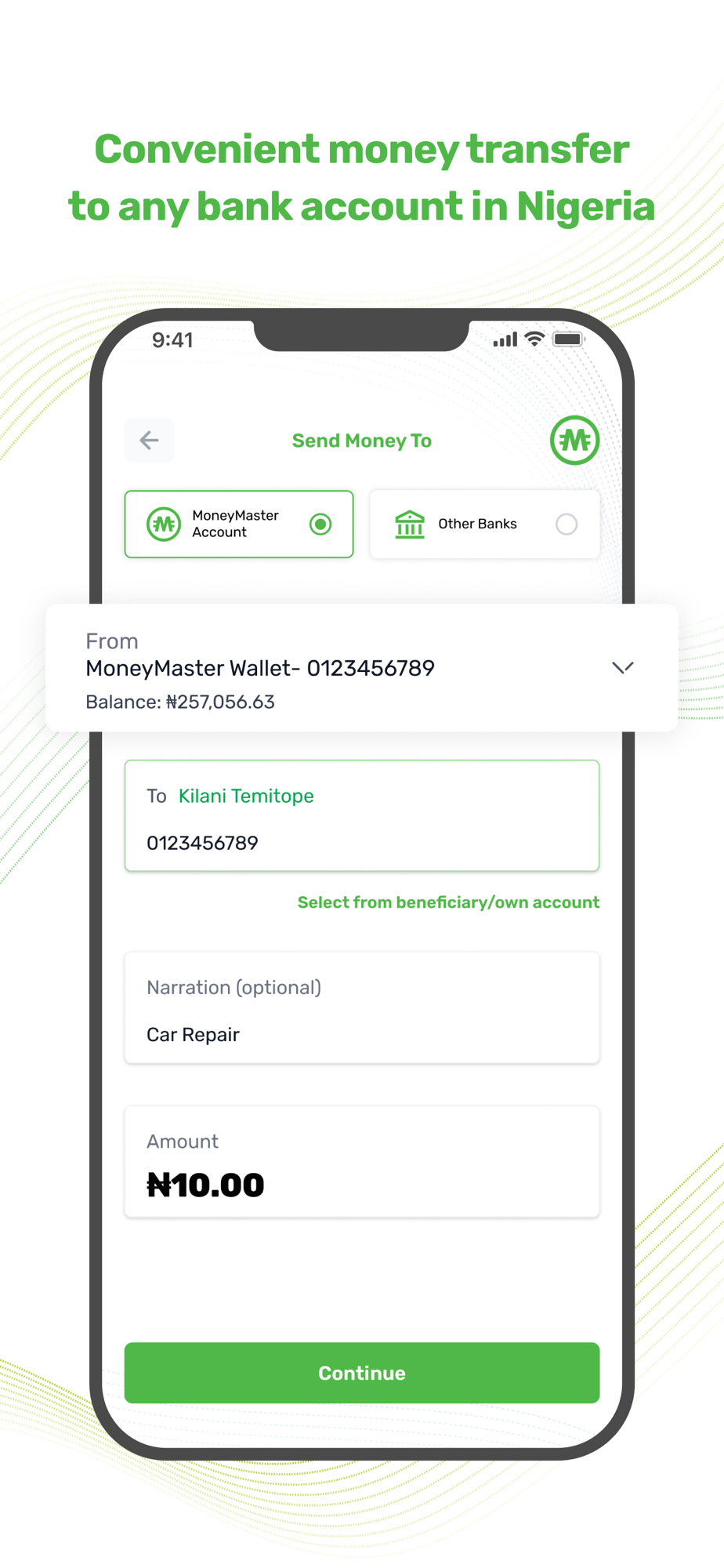 You can send money to any bank account or mobile wallet in Nigeria by providing the beneficiary's bank account number and bank name. To receive funds, simply share your phone number without the first zero as your account number. Alternatively, you can share your 10-digit savings or current account number (NUBAN) with the sender.