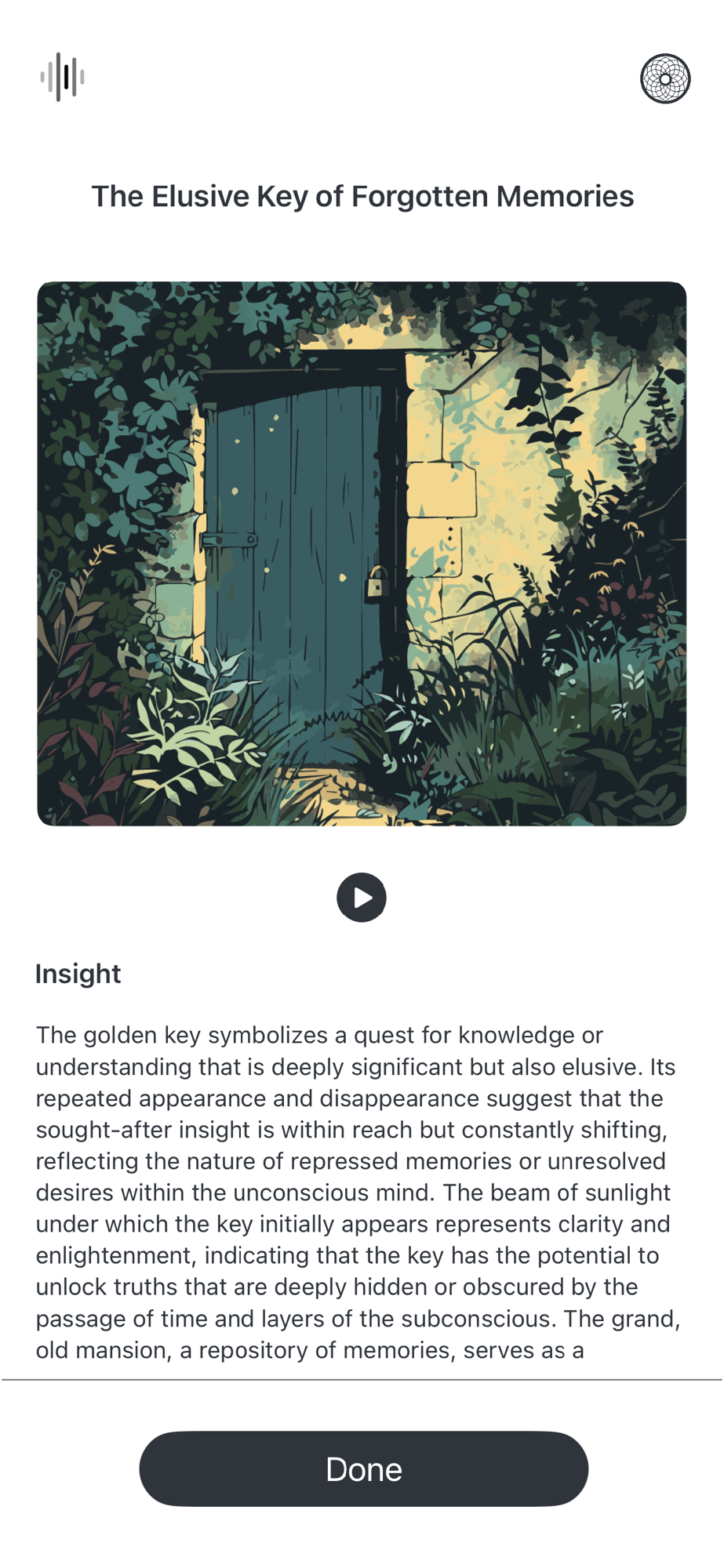 Dive into your nocturnal mind, where each dream becomes a journey of self-discovery. With DreamDive, every night offers a new pathway to understanding your inner world, guided by voices as realistic as your dreams.