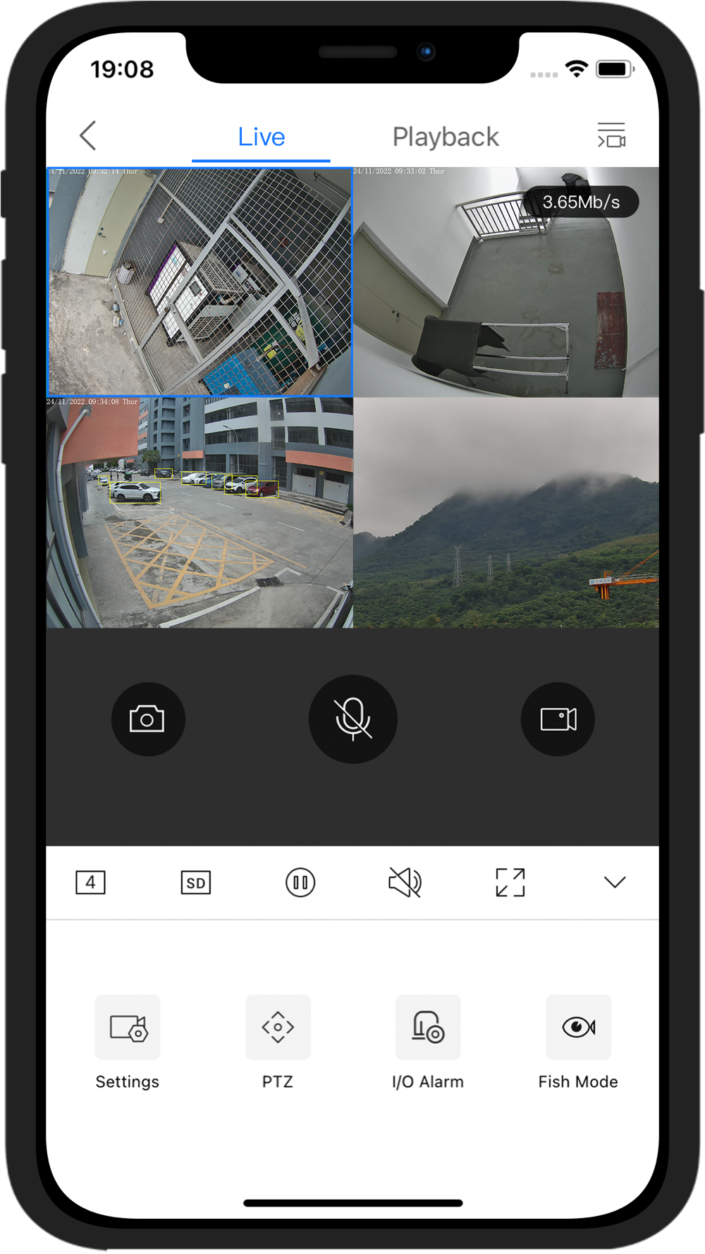 *Playback video preview of 4 channels.