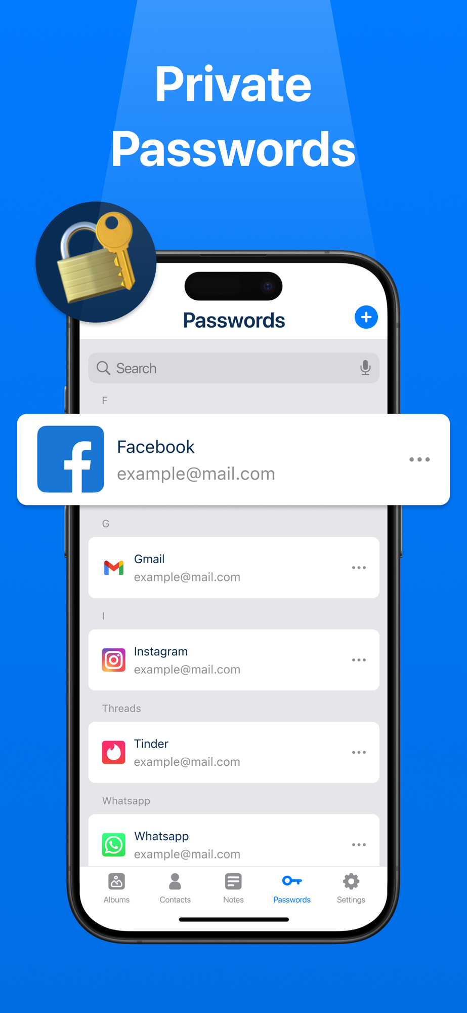 Multi-functional: Not just a photo vault! Store and manage passwords, contacts, and notes securely in one place.