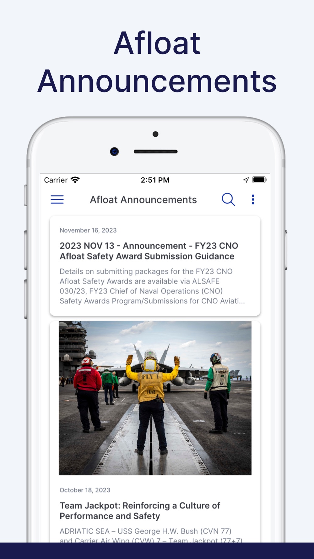 The Naval Safety Command mobile app delivers valuable guidance and tools to assist naval safety personnel in assessing, managing and reducing risk on and off duty. Users have access to four portals, each with warfare community-specific content including: safety program information, checklists, guides, templates, announcements, assessments and much more.