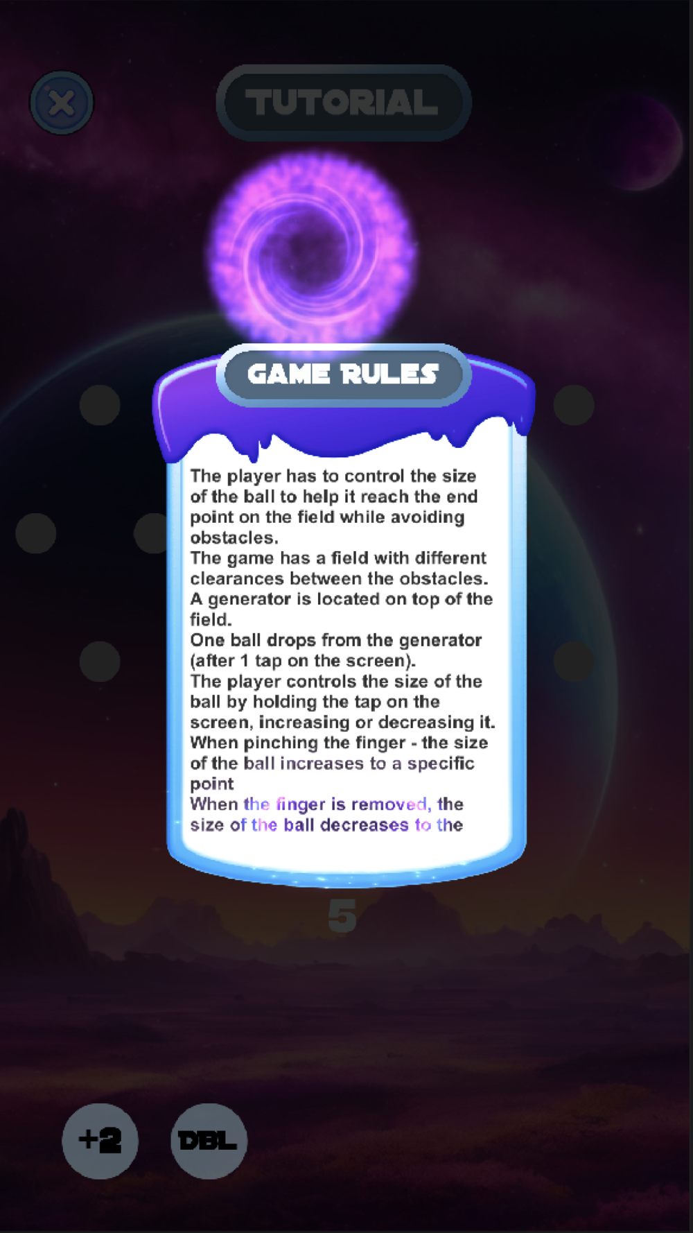 Управление размером: Удерживайте экран, чтобы уменьшить размер шарика и пройти через узкие проходы. Отпустите его, чтобы увеличить, избегая препятствий и преодолевая расстояния.
