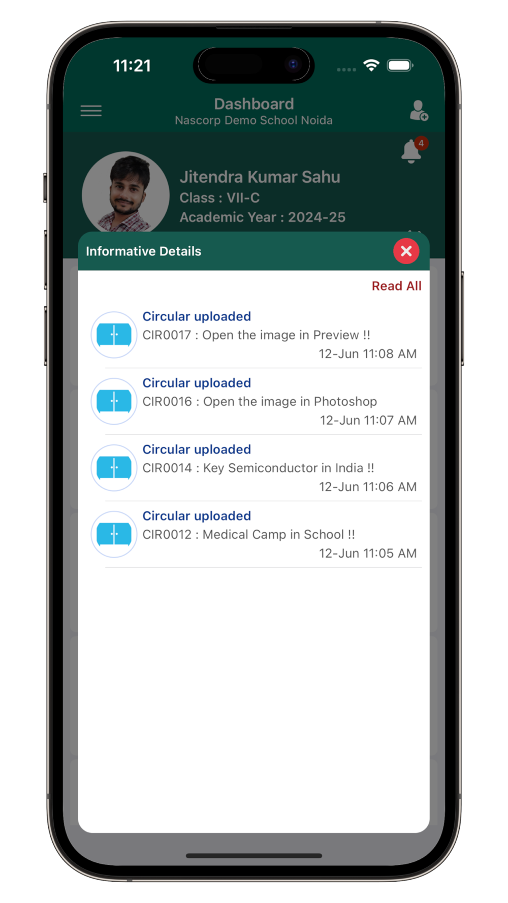 This app also helps School Management track and supervise all daily activities related to Students/Parents and Employees. This app sends automatic notifications to respective users regarding any updates to their information