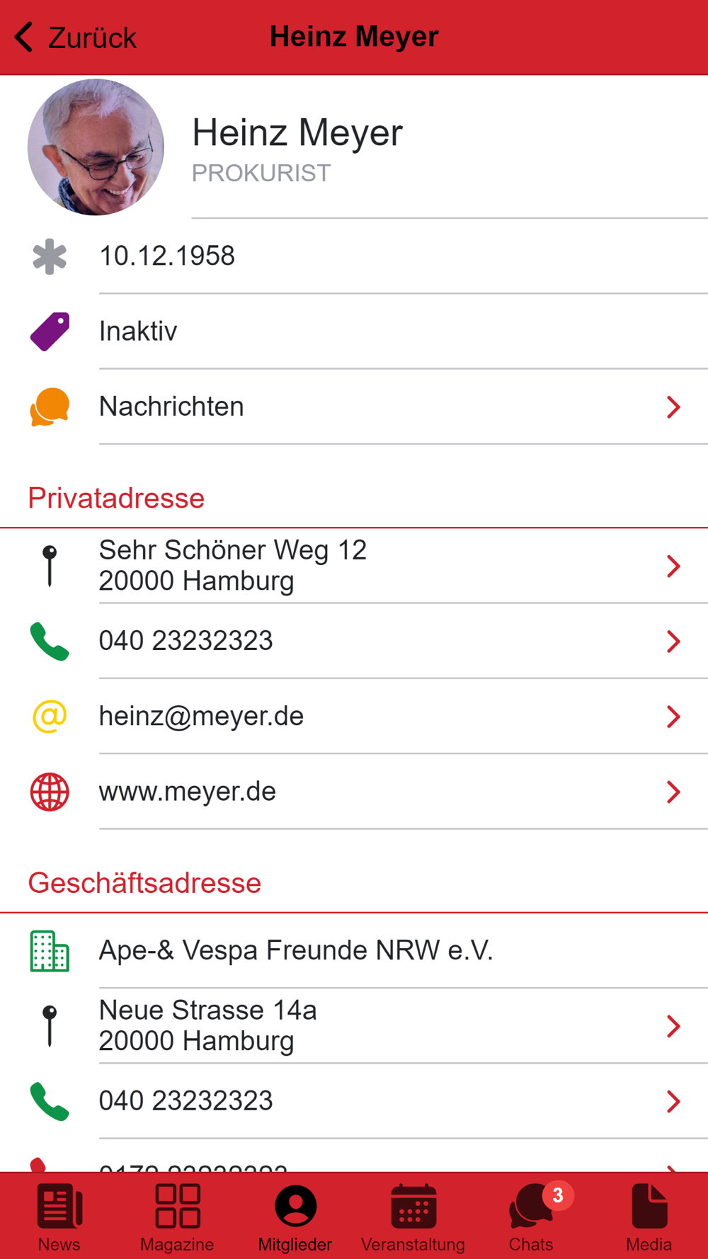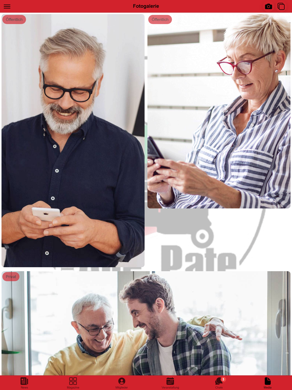 Organisieren Sie Ihr Verbandsleben vollumfänglich digital: Kommunikation von Neuigkeiten und Mitgliederzeitschriften, Verwaltung aller Mitgliederdaten, Erstellung von Projektgruppen, Organisation von Veranstaltungen mit Zu- und Absagen, Einzel-, Gruppen und Organisations-Chat, Bereitstellung von Dokumenten, öffentliche Fotopinnwand und vieles mehr...