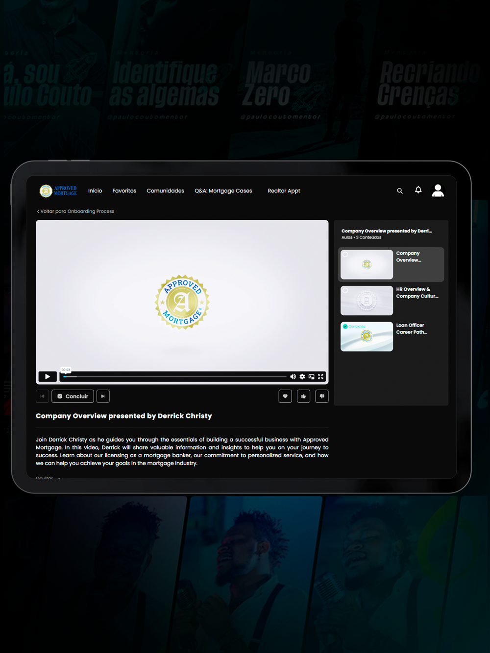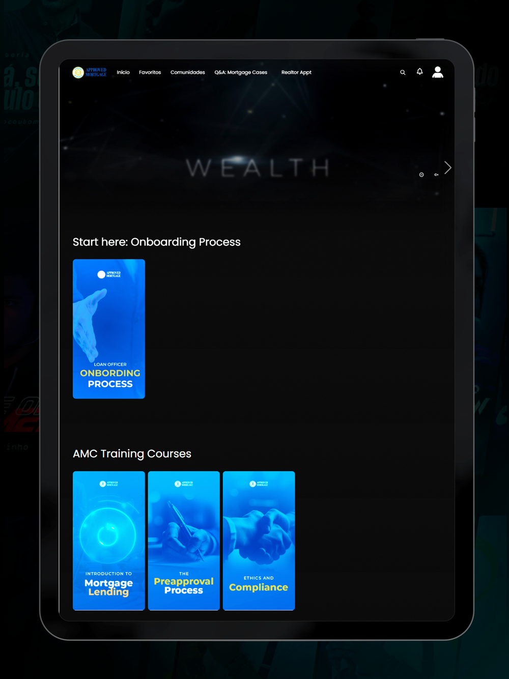 The Approved Mortgage Training Platform is an innovative and comprehensive educational tool, specifically designed to develop, enhance, and engage the company's employees. This platform offers a wide range of high-quality content, covering technical, theoretical, and practical aspects essential for achieving excellence in the industry. Additionally, it provides users access to dynamic digital communities, facilitating knowledge exchange between mentors and learners, and incorporates gamification elements to make learning more interactive and engaging. The platform is constantly evolving, with regular updates of content to reflect the latest and most relevant market trends.