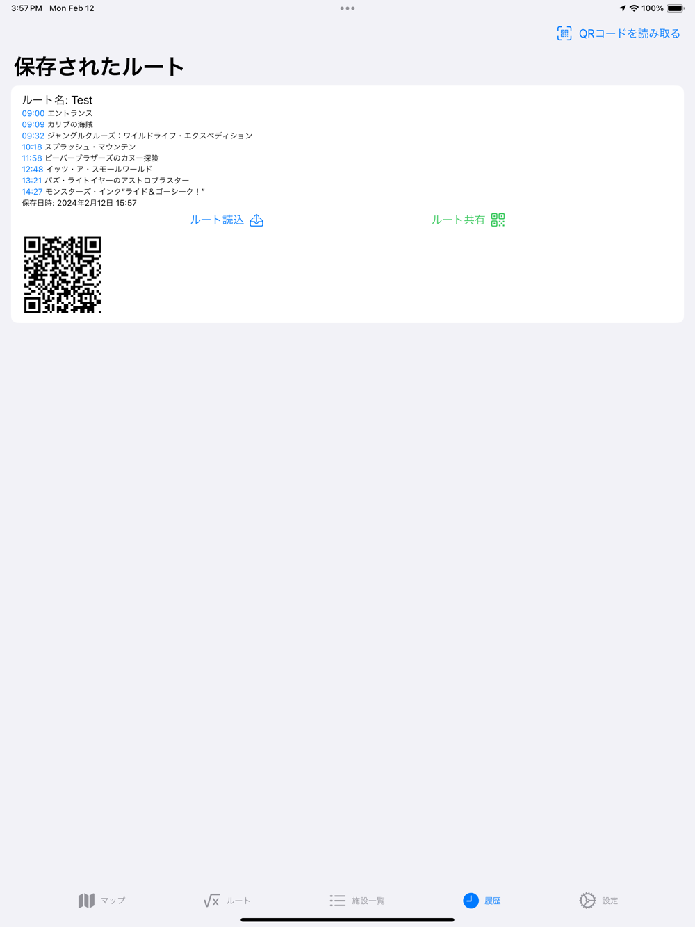 * QRコード共有: 作成したルートをQRコードで簡単に共有。グループでの利用に便利。
