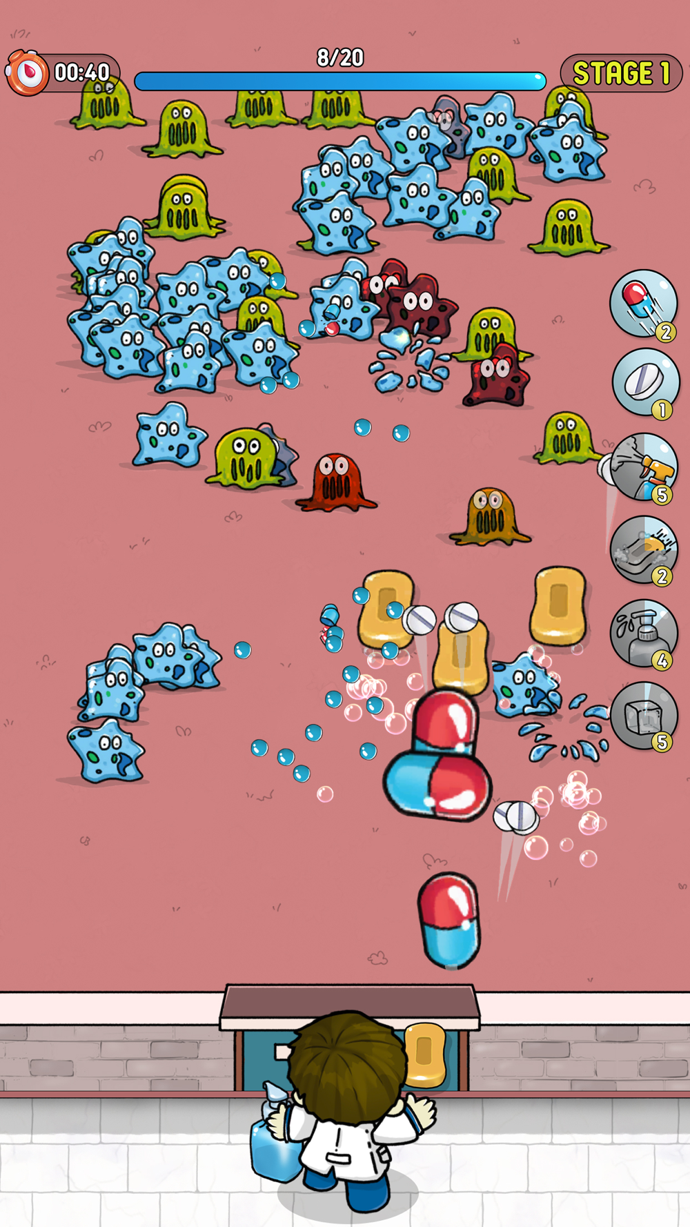 Upgrade and Unlock Weapons: Collect points to upgrade your medical arsenal and unlock new and potent medicines, tablets, and soaps. Each upgrade brings you closer to mastering the art of GermBusting!