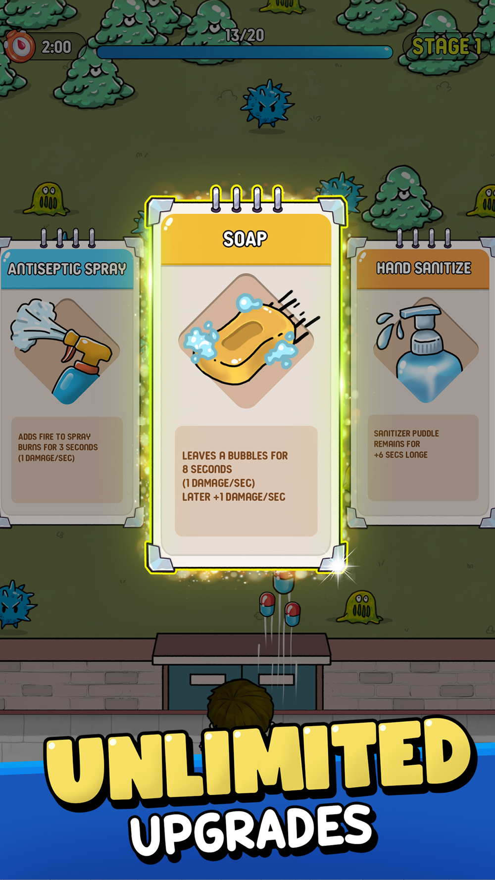 Power-ups and Boosts: Gain an advantage with powerful boosts and game-changing power-ups. From speedy tablets to explosive soap bombs, discover strategic ways to defeat the relentless waves of germs.