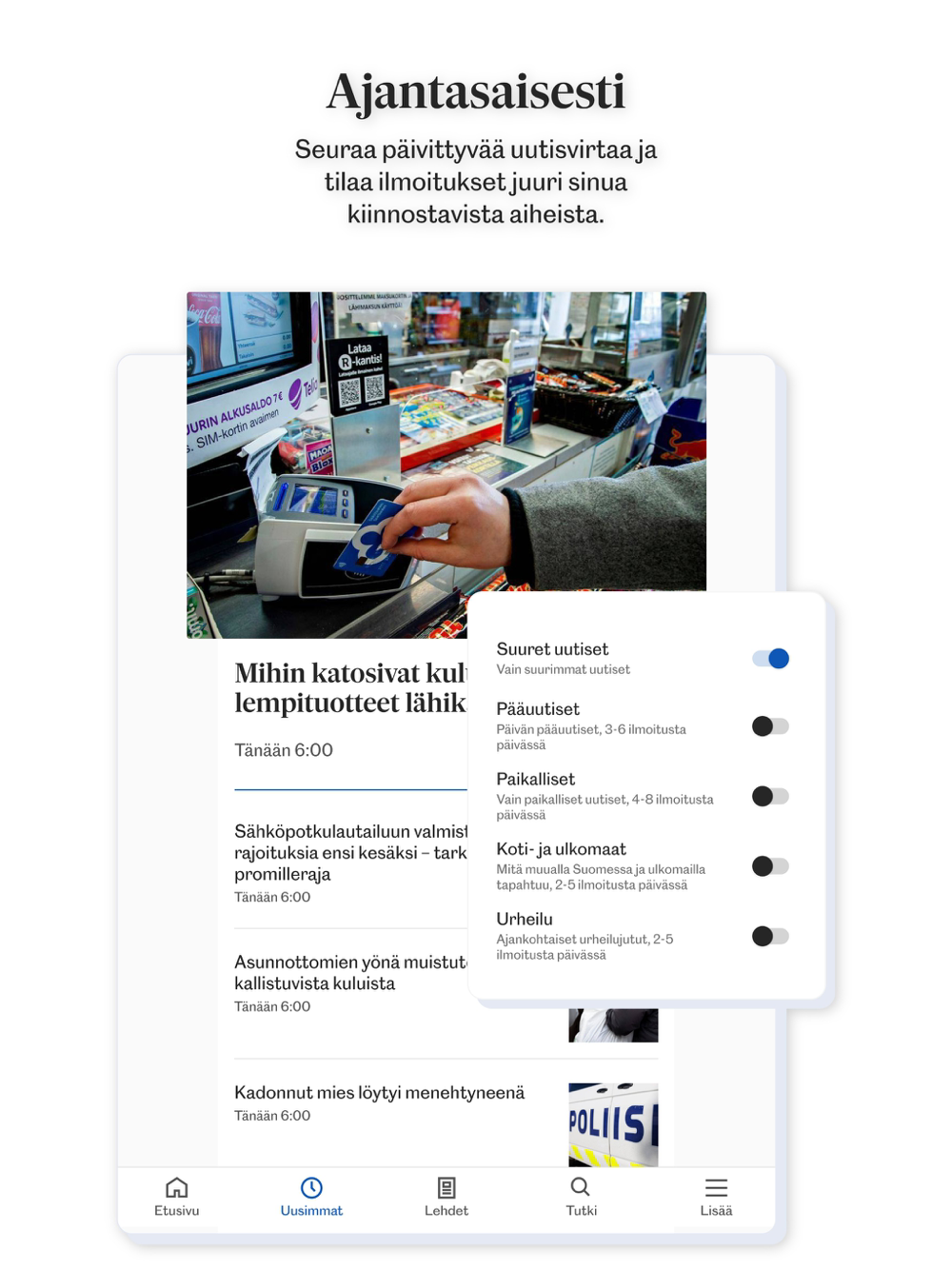 Seuraa jatkuvasti päivittyvää uutisvirtaa, tutustu erilaisiin sisältökokonaisuuksiin tai lue päivän lehteä. Tunne lähialueidesi kuulumiset ja tilaa ilmoitukset juuri sinua kiinnostavista aiheista, jaa oma näkemyksesi kommenttikentässä tai jatka keskustelua jakamalla juttu sosiaalisessa mediassa.