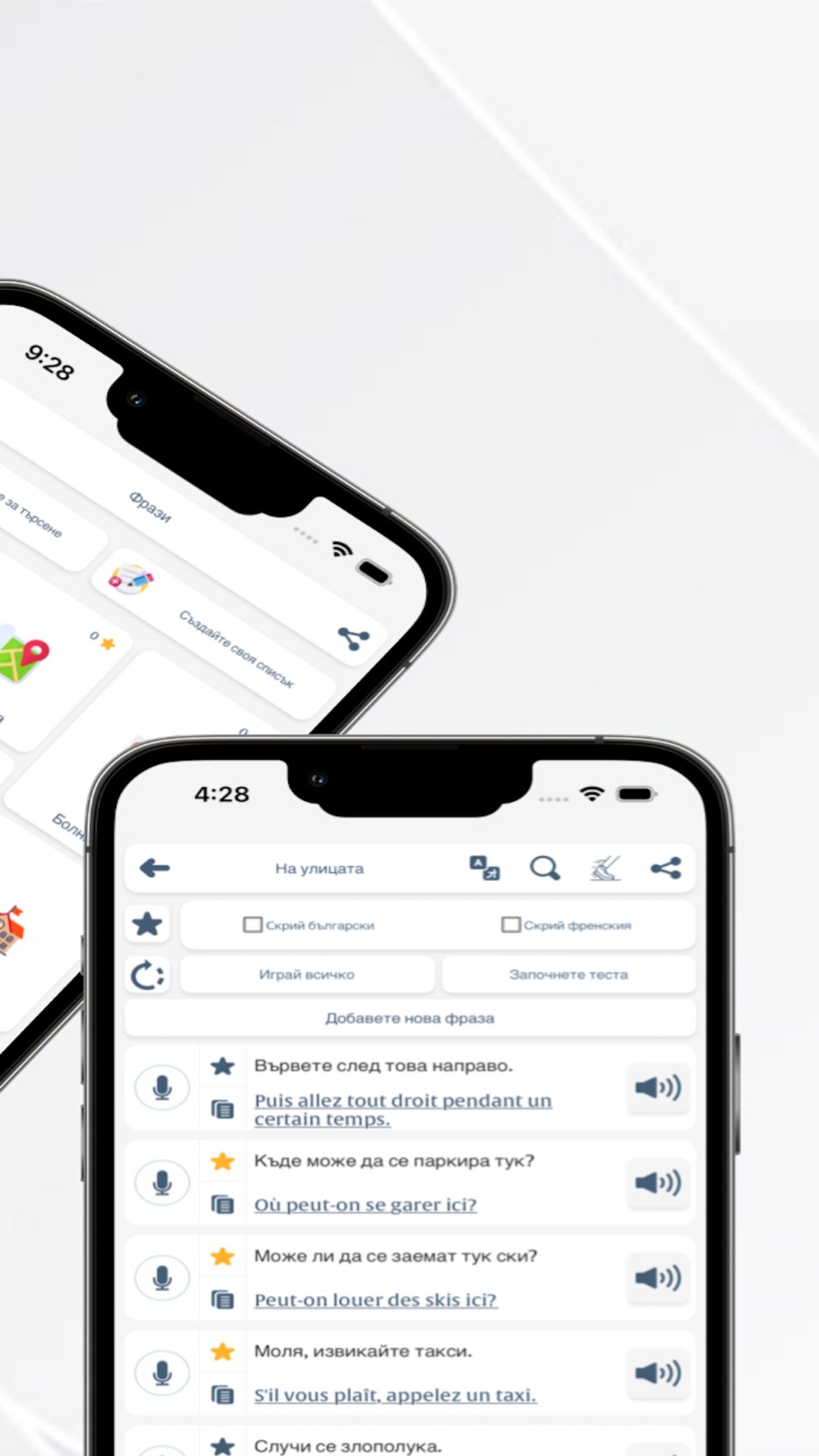 Нашето приложение е специално създадено за български говорещи, предоставя преводи, обяснения и примери на български, за да ви помогне да разберете лесно френските понятия. Той преодолява пропастта между двата езика, осигурявайки безпроблемно учене.