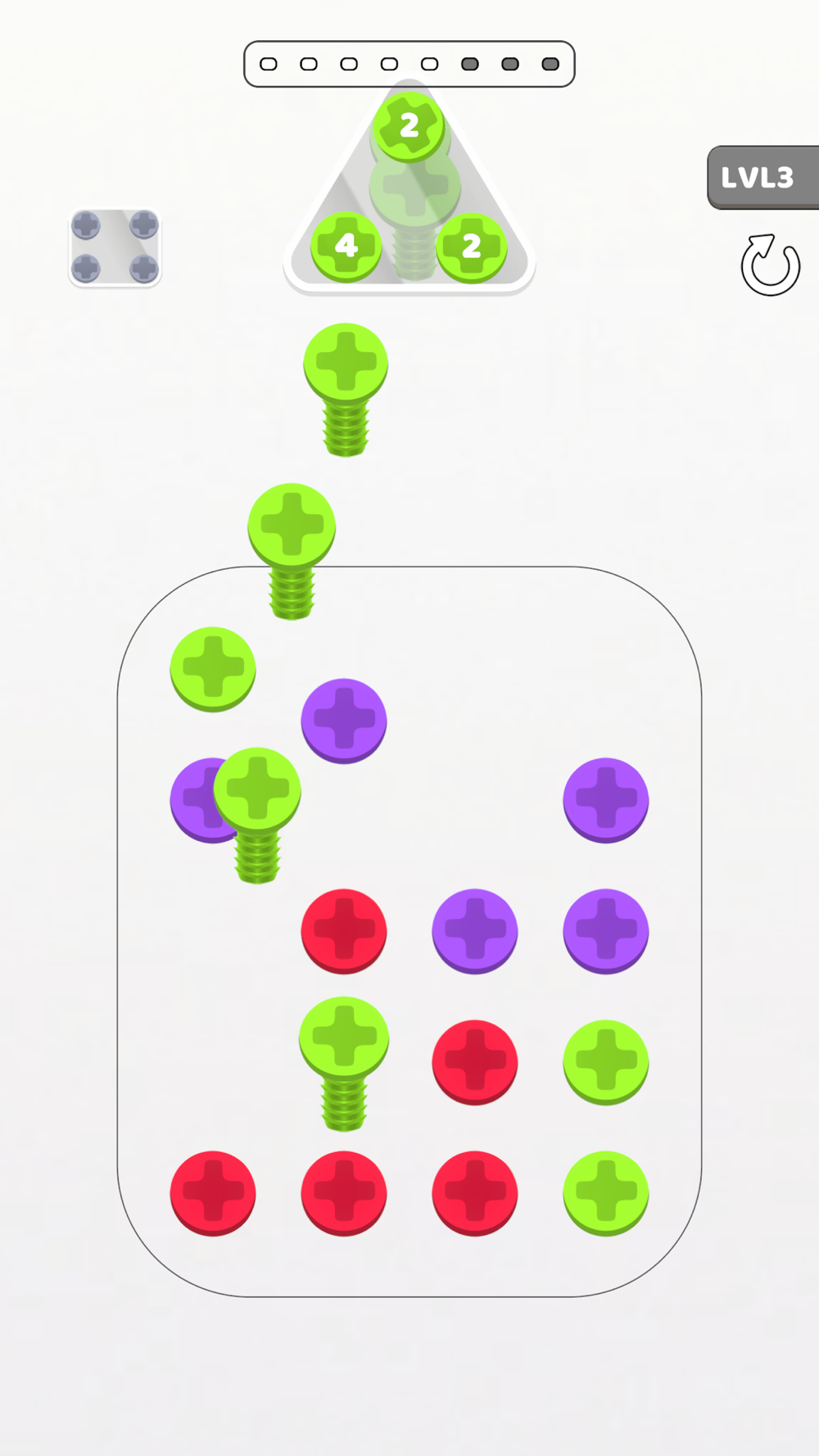 Combine the colored balls to unscrew the screws. If you combine the right colors, you will unscrew all the screws. You should try this. It's fun.