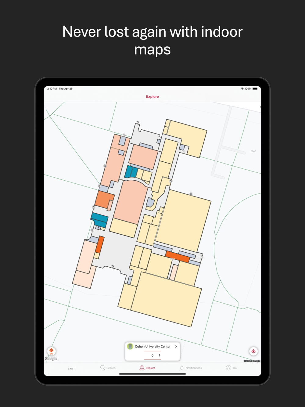The CMU app provides services to the network of users that are somehow related to this physical campus. You have access to the campus news and events and can also view Zoom events in the App.