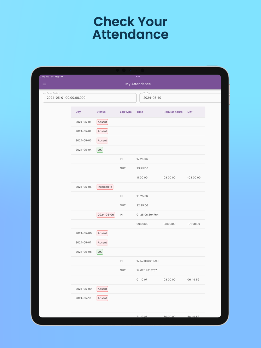 Employee Self Check In/Out App with daily attendance records using either QR verification or GEO Location verification.
