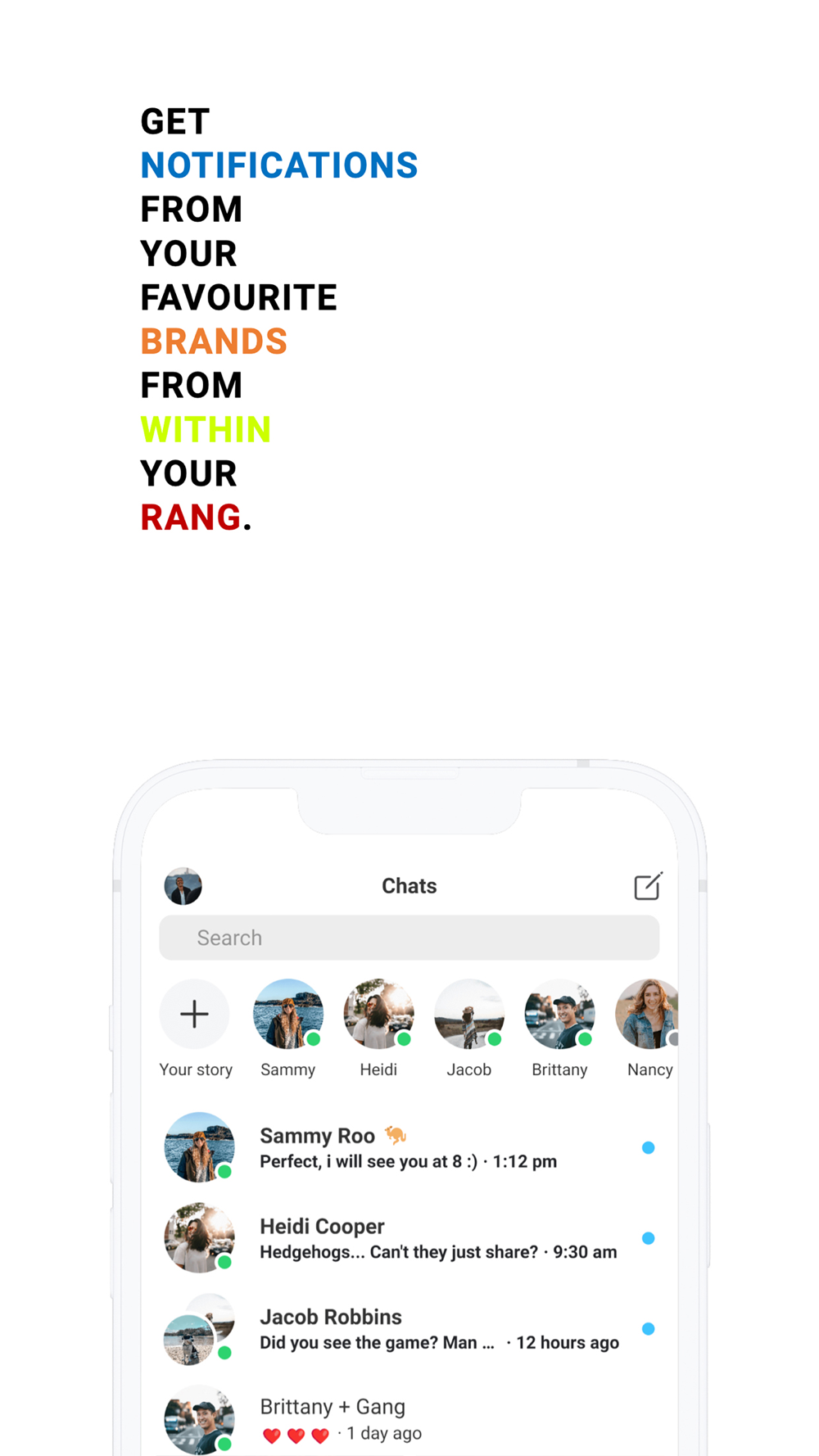 * Direct Communication: Send instant notifications to people within range about offers, events, or updates.