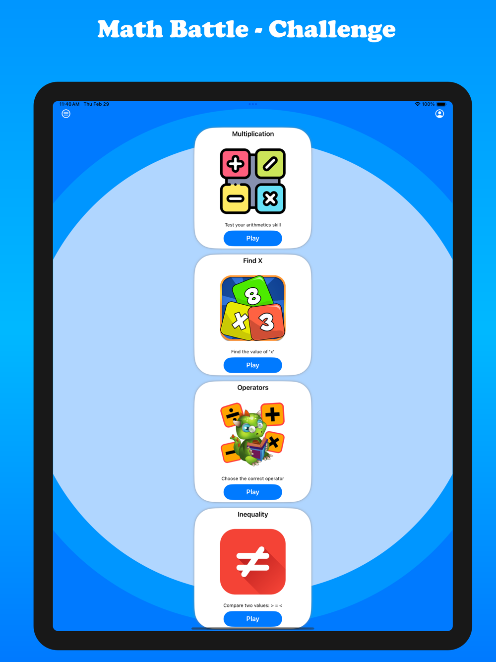 Welcome to "Math Battle", the ultimate iOS game designed to make learning math fun and engaging for students and kids! With four exciting game modes, challenging levels, and a global leaderboard, Math Battle is the perfect way to sharpen your math skills while enjoying yourself.