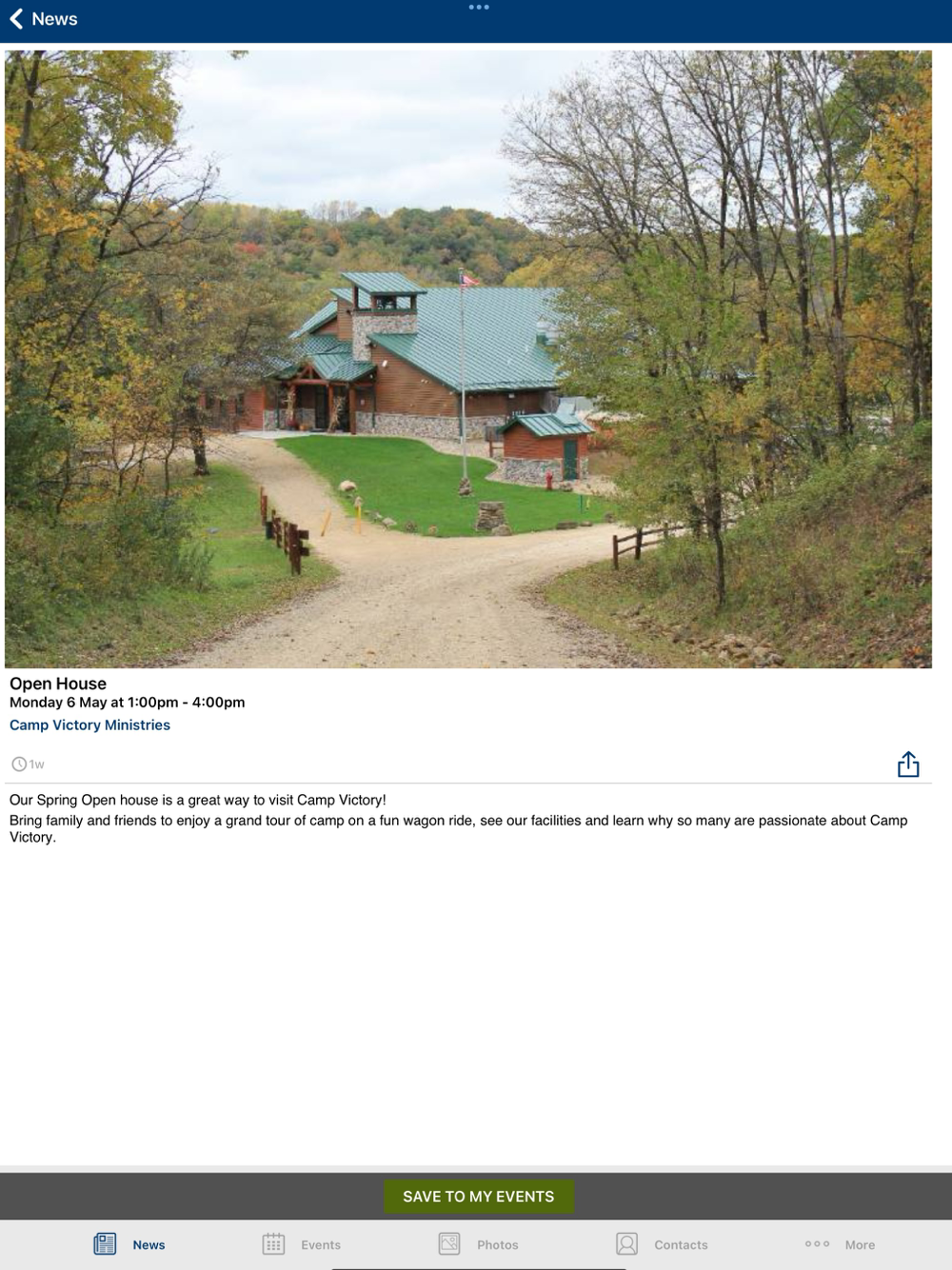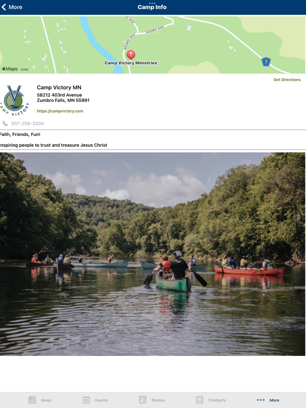 Whether you're a parent wanting to keep up with how your child's week of camp is going, a staff member wanting to stay updated on camp events, or just someone wanting to learn more about fun events throughout the year, Camp Victory MN app is the best way to check all of your boxes.